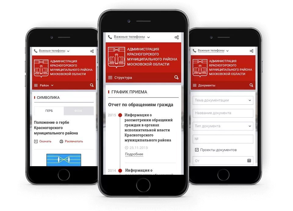 В сжатые сроки разработать и запустить новый сайт Администрации Красногорского района в соответствии с требованиями ФЗ к сайтам органов власти. Обеспечить удобный поиск любой информации на всех видах устройств.