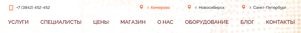 - На главной странице вместо неинформативного блока «О нас» размещены ссылки на услуги, что сразу вовлекает пользователя в изучение процедур