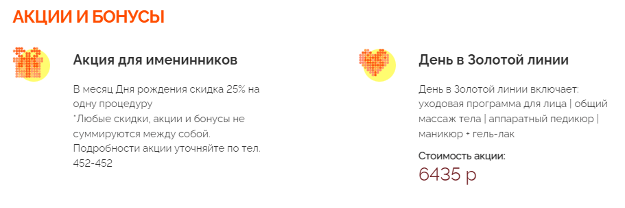 Обязательная страница для сайта в бьюти-индустрии. Отсутствие удобного прайса будет раздражать пользователя и вызовет сомнения в прозрачности ценообразования.
