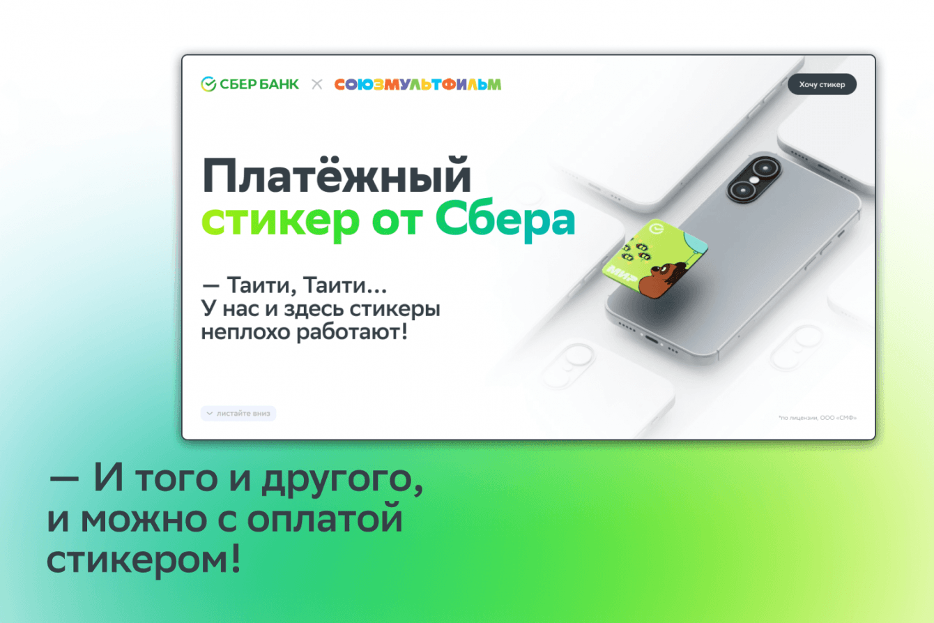Эффектно презентовали коллаборацию платежного стикера Сбера и Союзмультфильма.