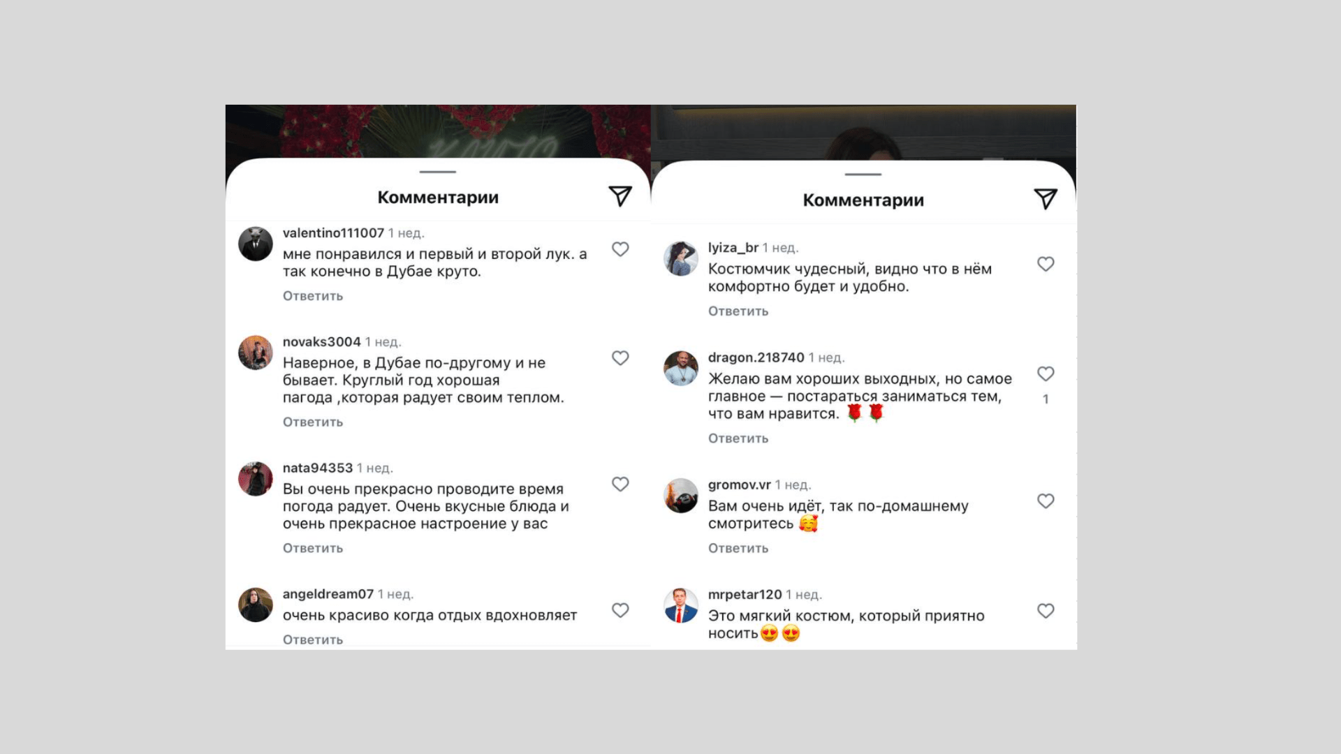 Пример накрученных комментариев. *Принадлежит Instagram — проект Meta Platforms Inc., деятельность которой в России запрещена