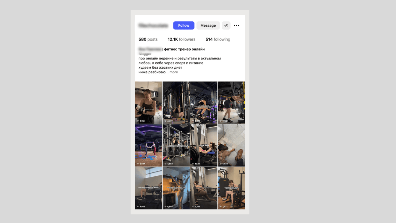 Пример автора, которого не взяли в работу из-за низких охватов в соотношении с кол-вом подписчиков. *Принадлежит Instagram — проект Meta Platforms Inc., деятельность которой в России запрещена
