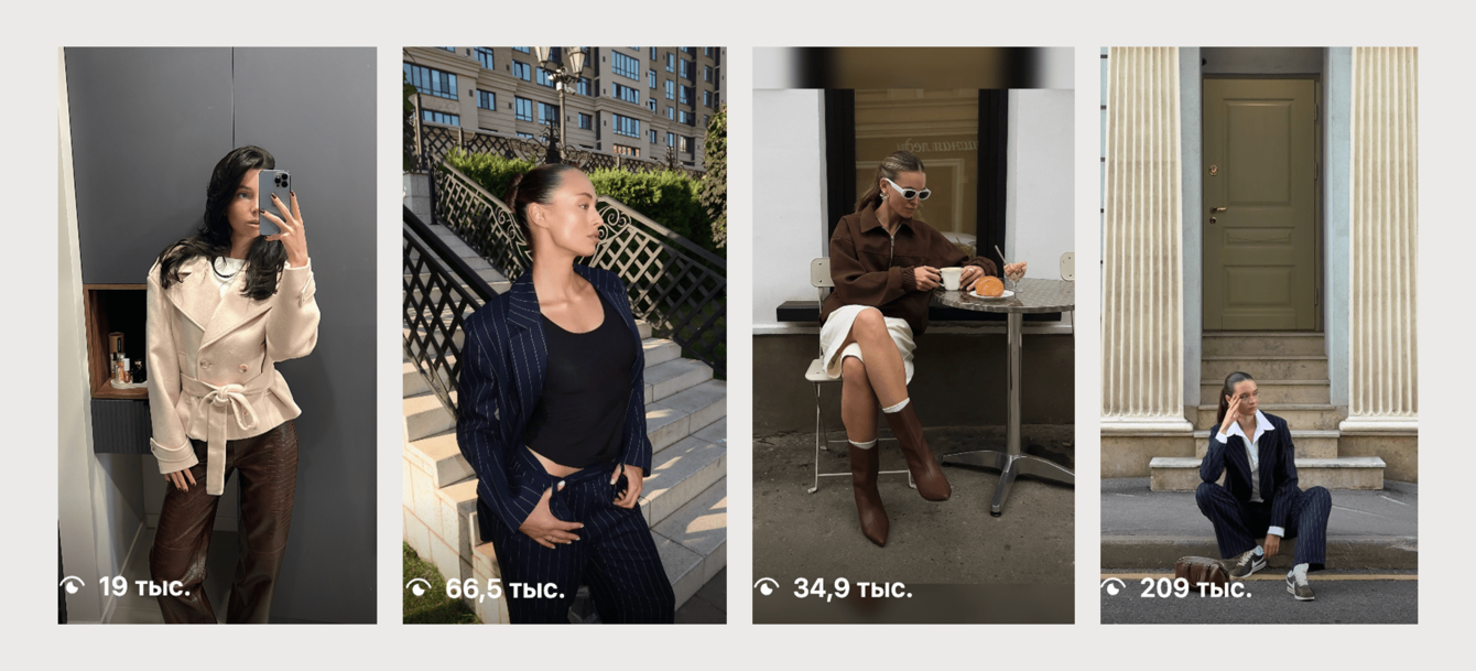 В работе с данным брендом, аудитория которого 25-45 лет (а ядро 35-44), мы сделали ставку именно на таких креаторов: они не строили контент вокруг лишь вирусных звуков, а показывали стиль, комфорт и уверенность в себе — те ценности, что близки женщинам данной возрастной категории.