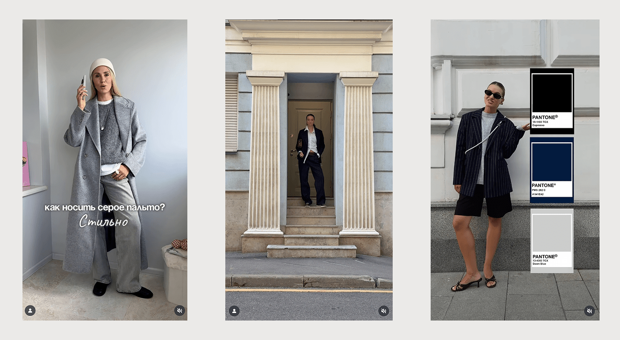Главная сложность заключалась в смене сезонности в процессе работы. Если в конце августа / начале сентября основной задачей было показать ролики со спортивными костюмами и легкими луками, то уже к середине месяца фокус должен был сместиться в сторону пальто и более теплых образов.
