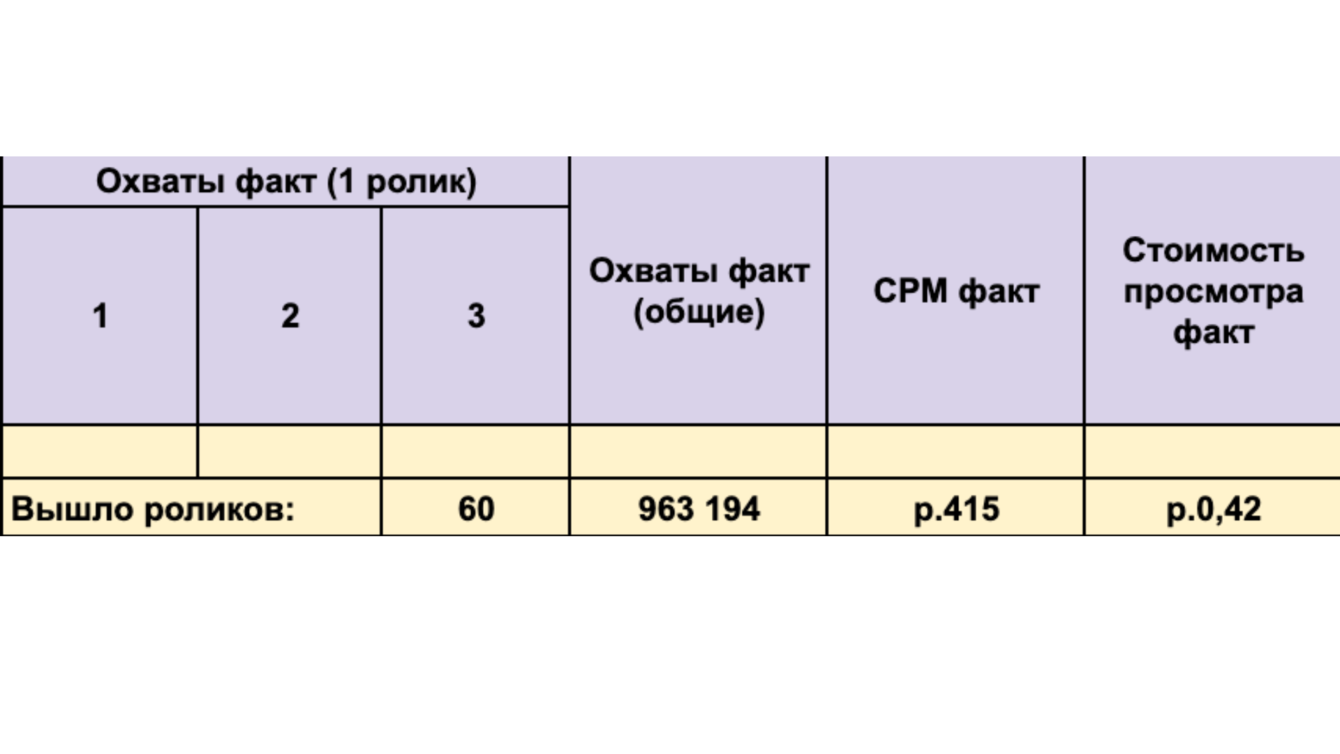 достичь охвата в 800 тыс., а стоимость просмотра — в 50 копеек.