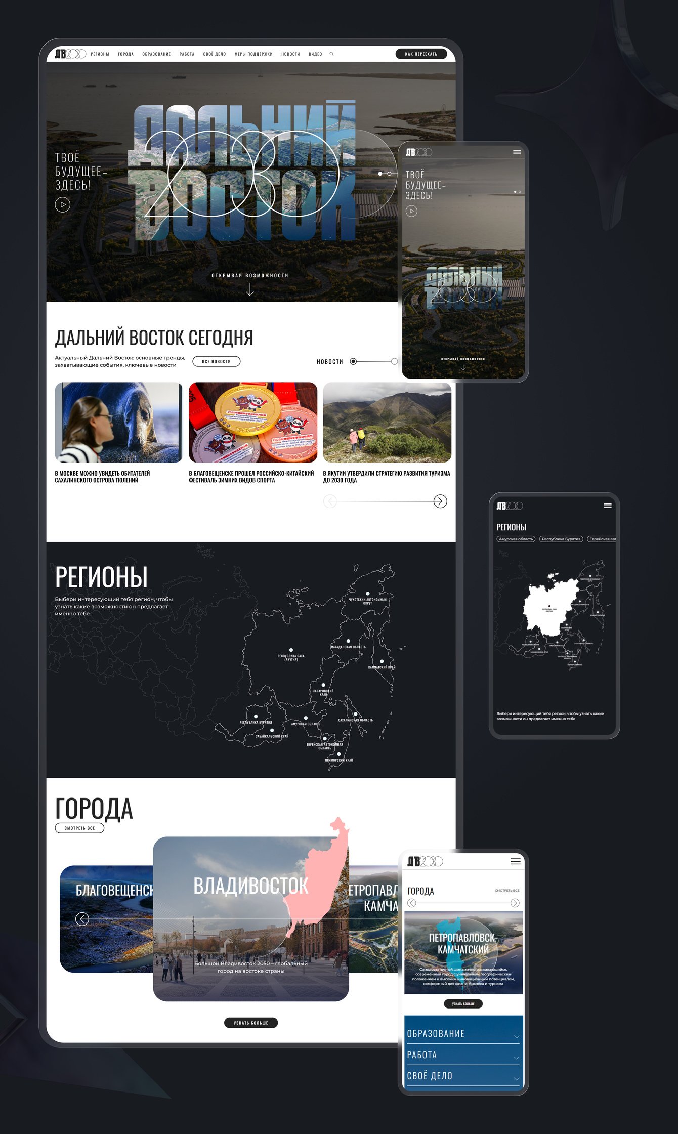 Сайт должен был стать частью экосистемы портала дальнийвосток2030.рф — сохранить визуальную связь с основным ресурсом, но при этом получить собственную динамичную подачу.