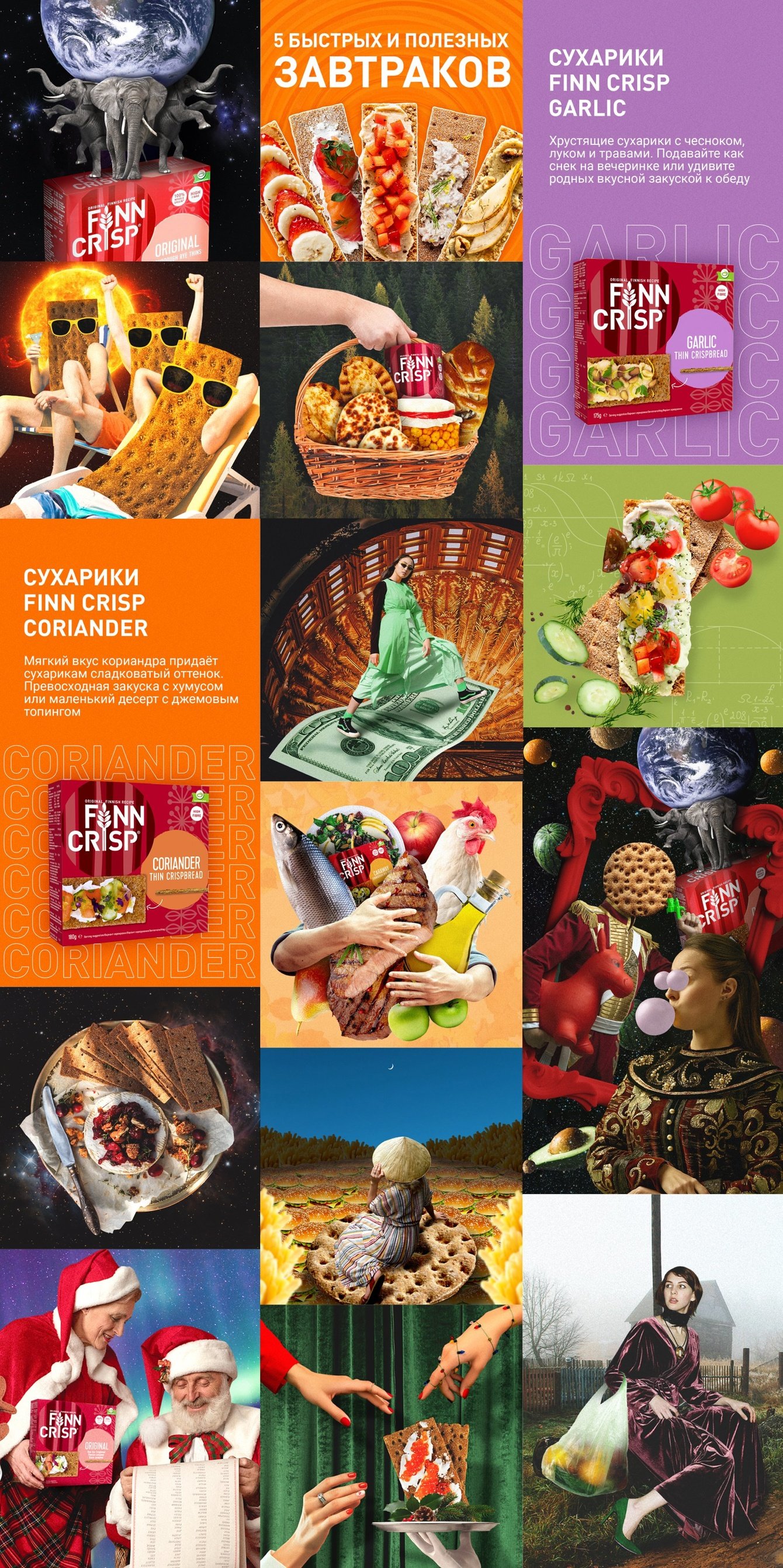 На этапе обсуждения с клиентом мы выяснили, что FINN CRISP готов делать креативную коммуникацию с юмором и ждёт соответствующего предложения. Поэтому мы старались разработать такое сообщение, на основе которого можно было бы практически неиссякаемо шутить, но также говорить серьёзно и вести продуктовую коммуникацию.