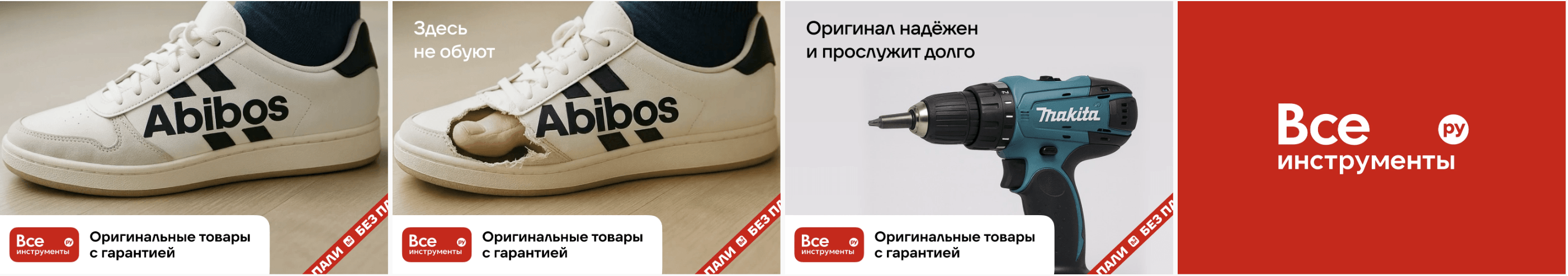 Необходимо придумать идею короткого 5-секундного ролика для наружной digital-рекламы, который ясно и эффектно донесет сообщение: «ВсеИнструменты.ру продают только оригинальные товары с гарантией».