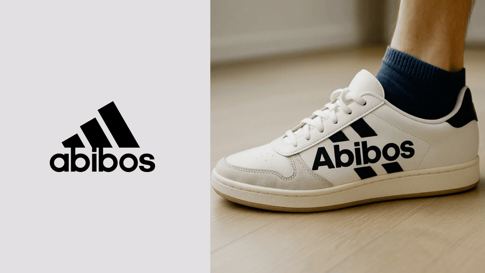 Для визуализации использовали образ несуществующего кроссовка марки Abibos с оторванным носом, чтобы подчеркнуть ненадежность подделок.