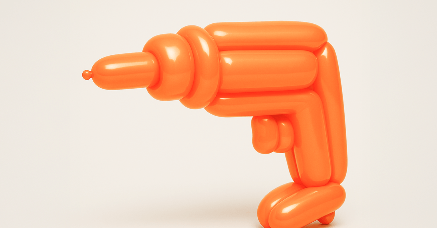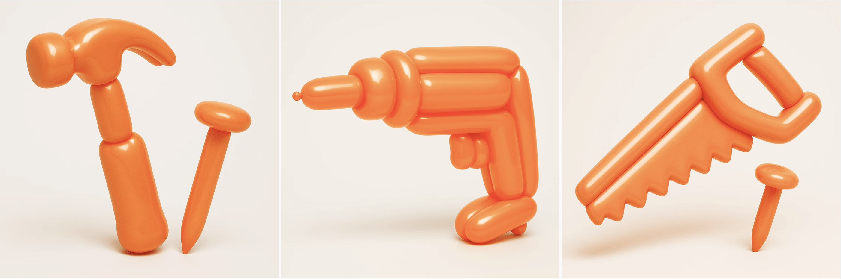 Устройства в виде шариков, скрученных в узнаваемые формы, которые лопаются и превращаются в настоящие оригинальные инструменты, подчеркивая идею «Без надувательств».
