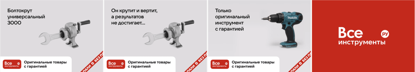 ВсеИнструменты.ру — крупный российский онлайн-гипермаркет товаров для дома, ремонта, строительства, сада и дачи. Компания делает ставку на надежность и оригинальные товары с гарантией — это и стало центром будущей кампании.