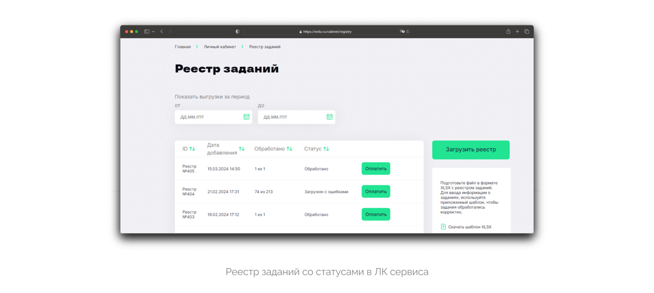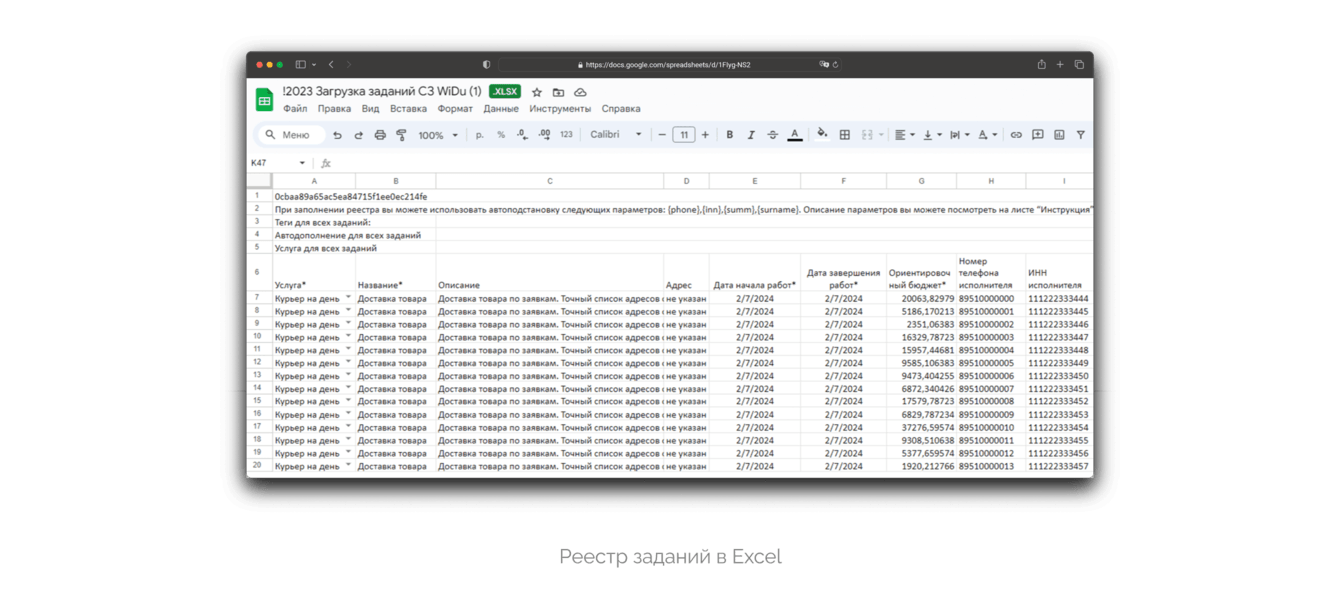 — также клиент хотел загружать задания на сервис большим списком (т.н. «реестр заданий»). Чтобы все данные по задаче и исполнителям можно было одним кликом отправить через «реестр» и получить за это комиссию.