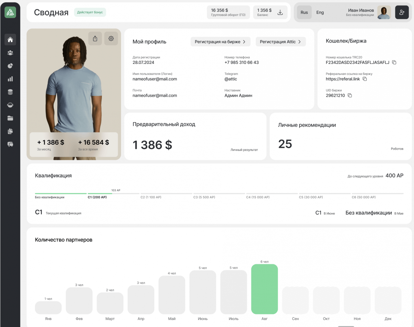 Создать админ-панель и дашборды для пользователей сети, которые работают с биржей