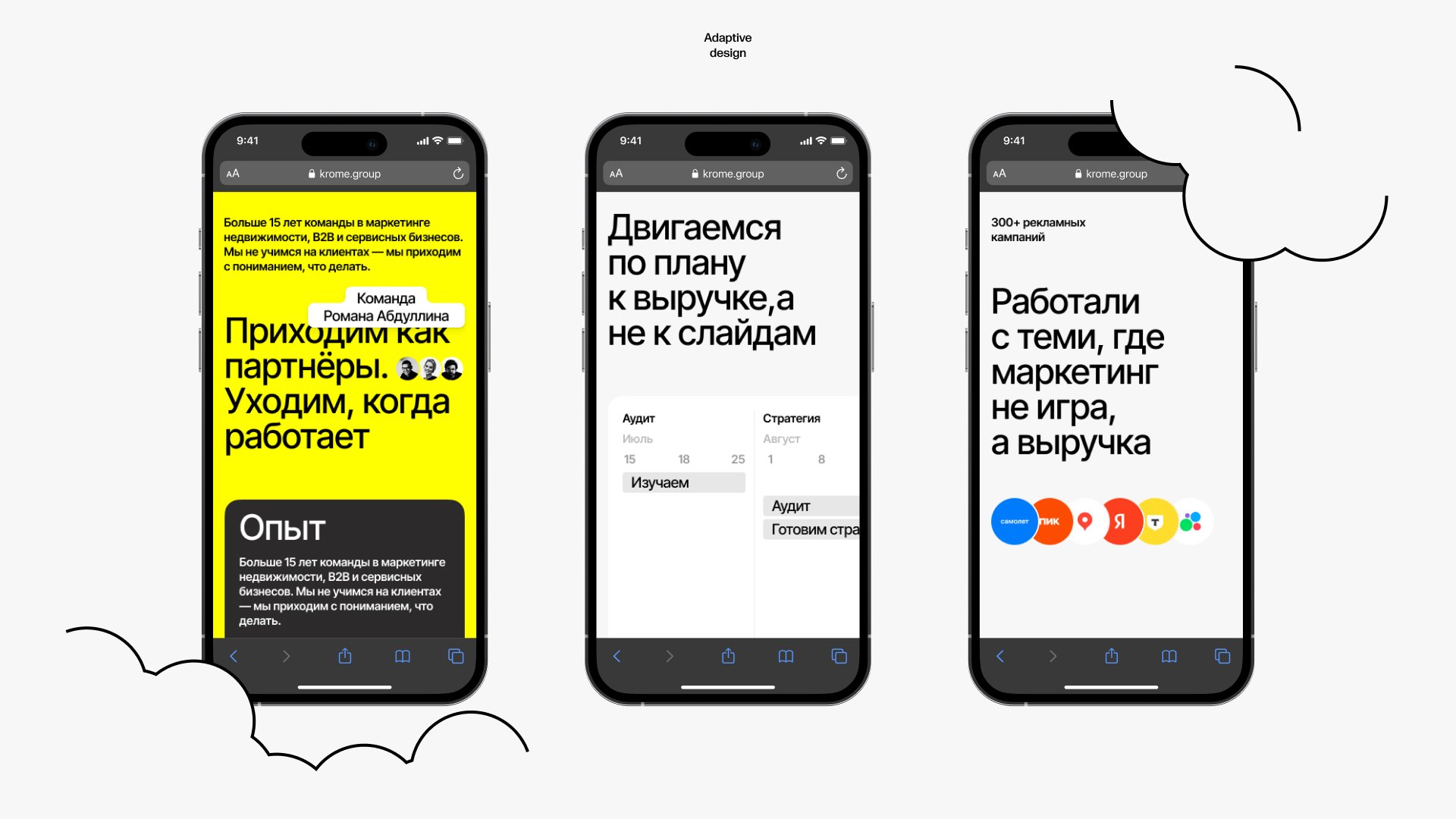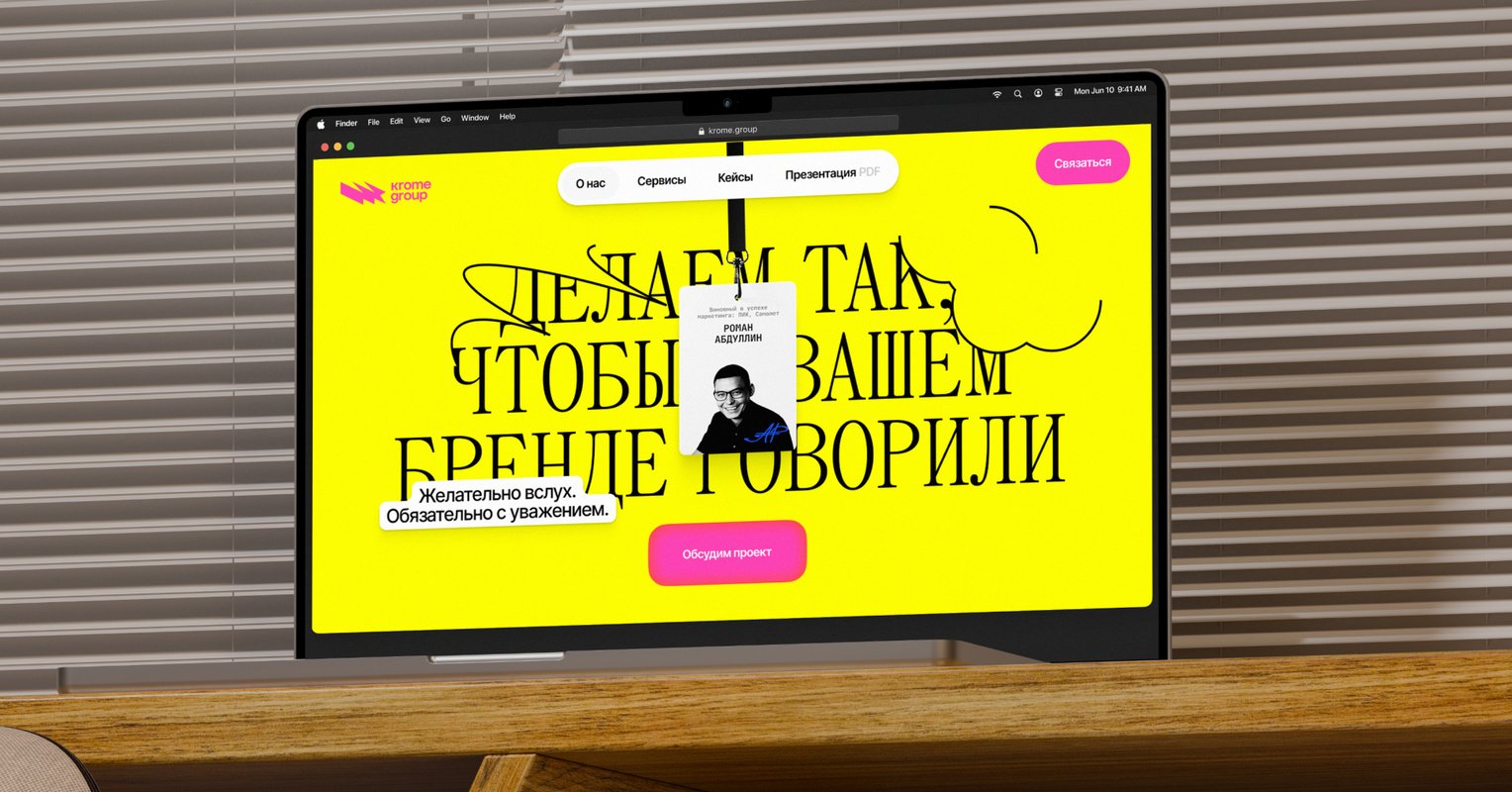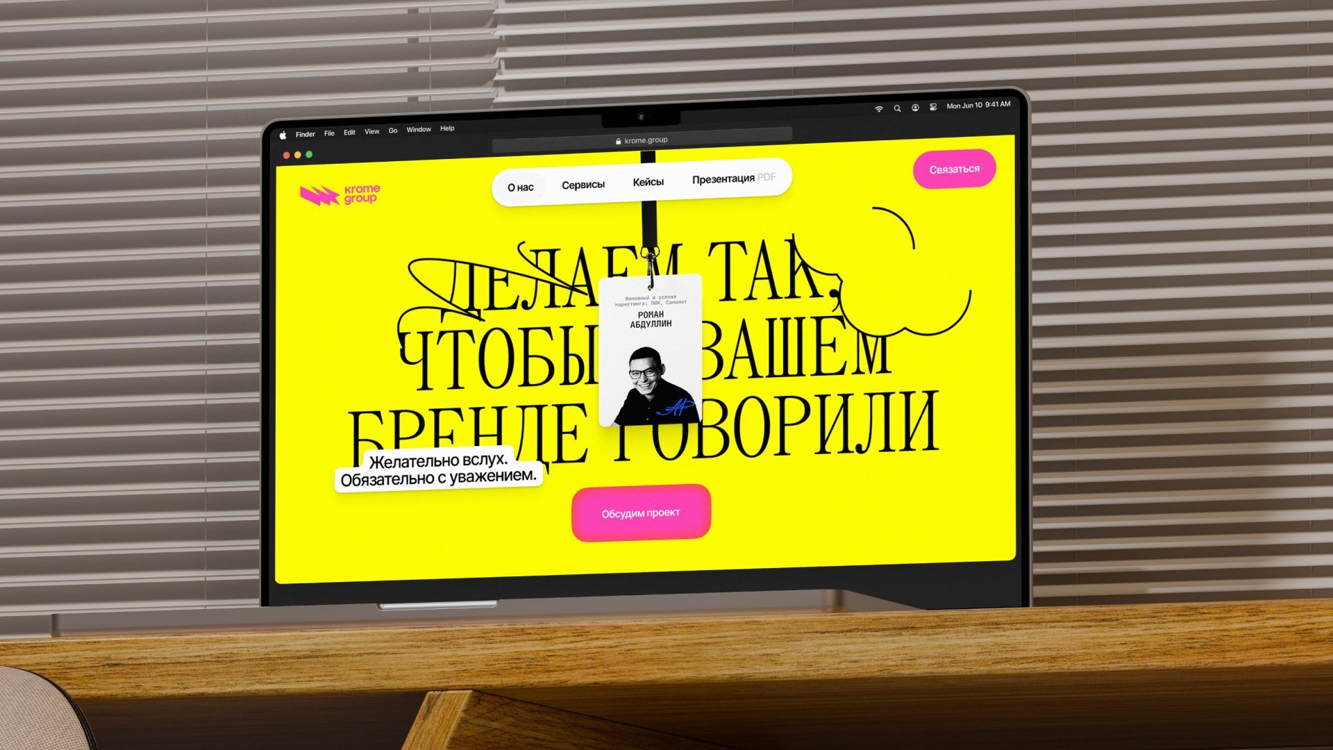 До старта проекта у Krome Group не было полноценного фирменного представительства в digital. Визитка в Notion не отражала масштаба агентства и не работала на продажи. Клиент хотел упаковаться по-взрослому, но при этом сохранить живость, дерзость и уникальный голос.