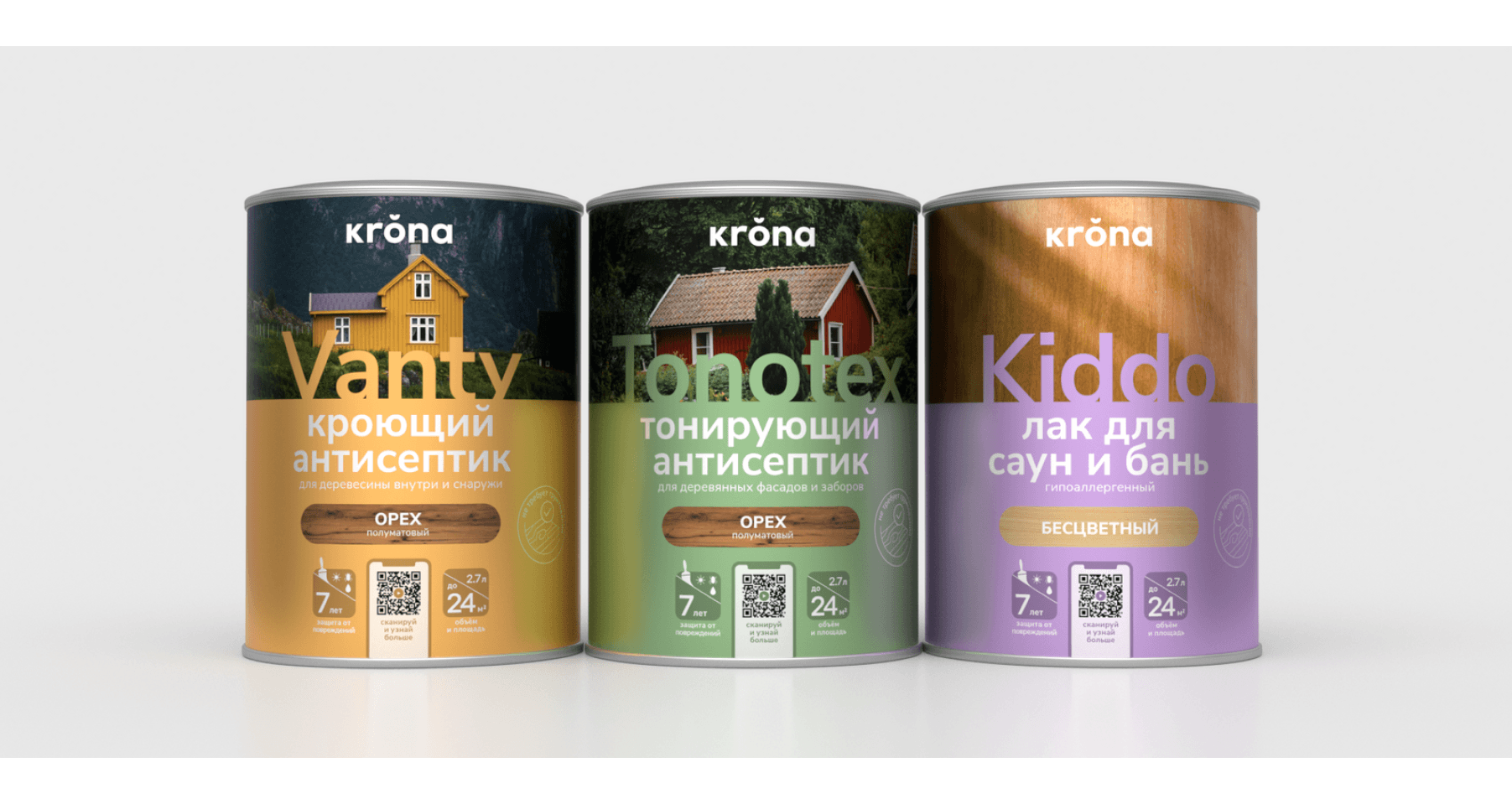 KRONA — российский бренд лакокрасочных материалов для дерева, металла и минеральных поверхностей. Производство находится в Луге, где работает собственный R&D-центр. Компания делает ставку на качество и технологичность, создавая краски, которые легко наносятся, служат годами и при этом эстетично выглядят.