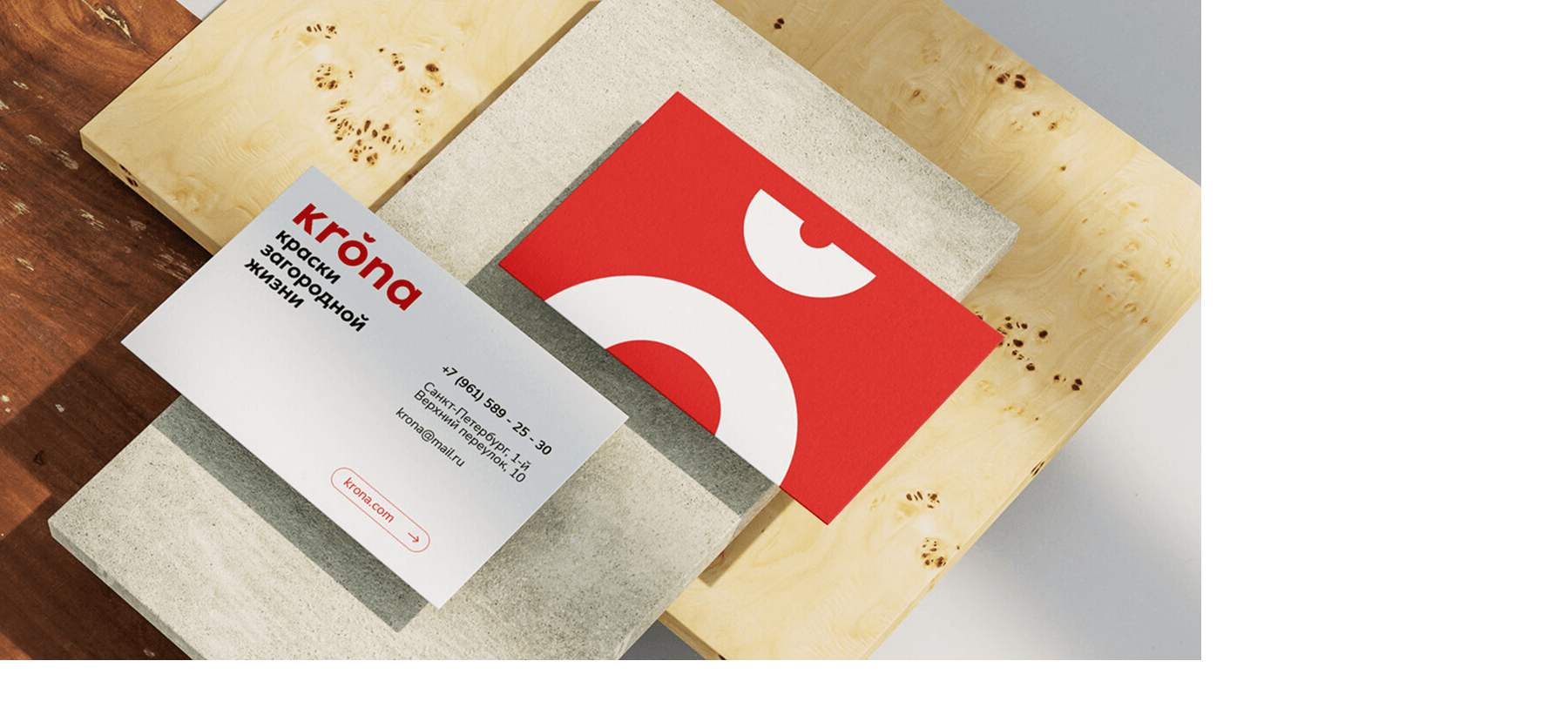 В основе — шрифтовое написание KRONA с узнаваемой «галочкой» над буквой о, символом качества и завершённости. Спокойное, уверенное начертание отражает характер бренда: надёжный, современный, без показного лоска. Подстрочник «краски загородной жизни» закрепляет позиционирование.