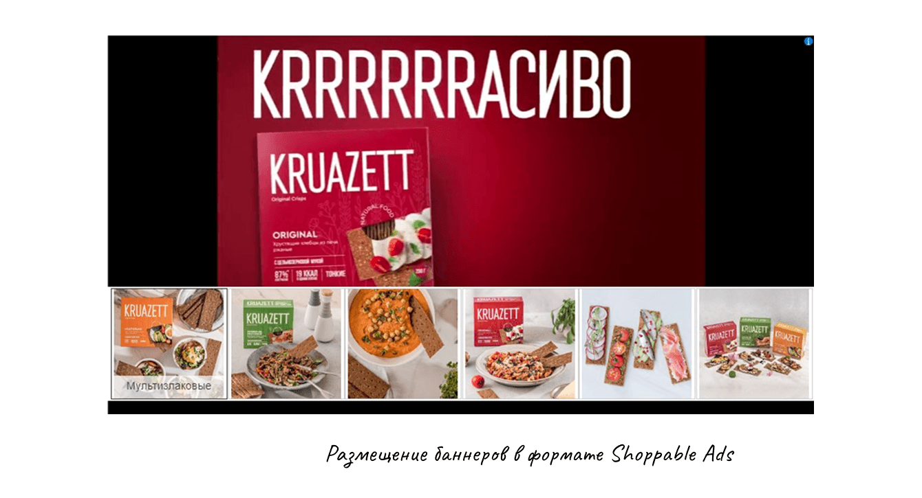 В рамках OLV мы использовали формат Shoppable Ads — интерактивный брендформанс-формат, совмещающий видео и каталог товаров.