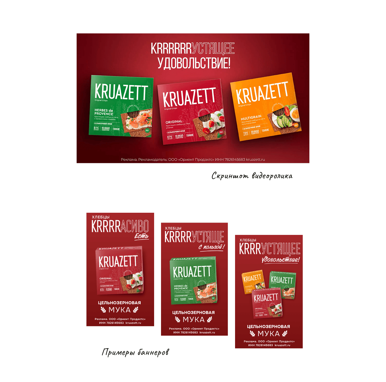 Клиент со своей стороны разработал концепцию рекламной коммуникации, подготовил 4 видеоролика: общий 20-секундный и три отдельных 10-секундных под каждый вкус хлебцев. На основе BIG idea дизайнер Red Digital подготовил 3 варианта баннеров.
