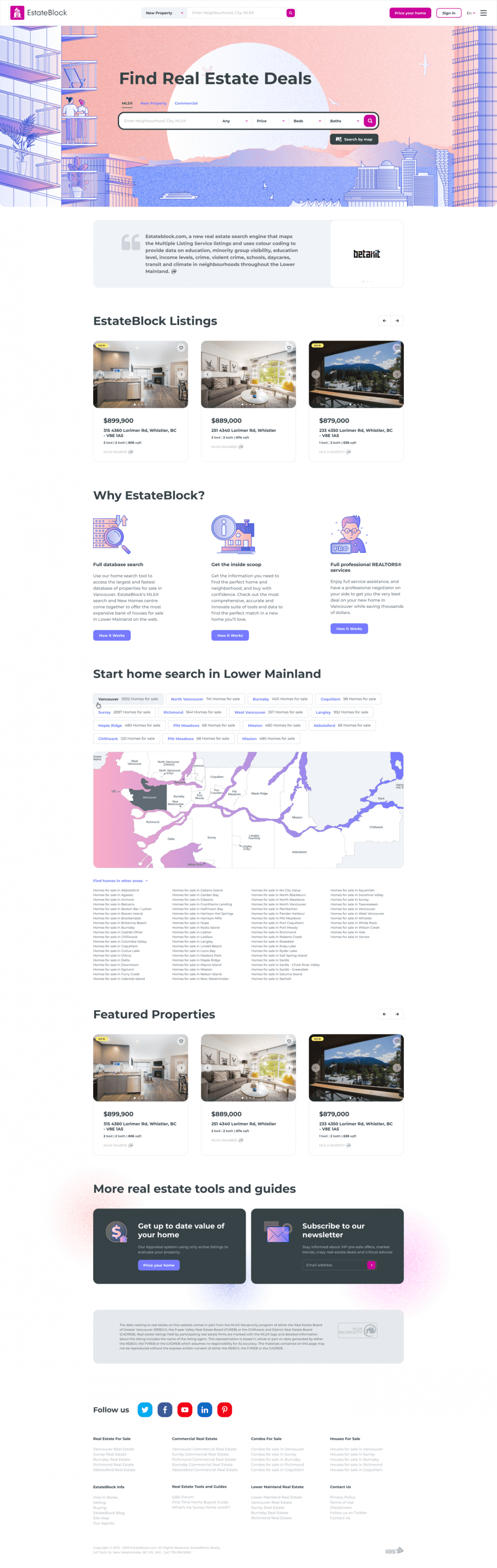 EstateBlock – популярный канадский поисковик недвижимости. Местные жители идут в первую очередь именно сюда, чтобы найти подходящий объект для покупки. Вау, подумал я! У меня есть возможность доработать проект, чтобы пользователи находили недвижимость удобнее и быстрее. Для этого мне предстояло хорошенько пофантазировать и поработать над юзабилити с полной отдачей.