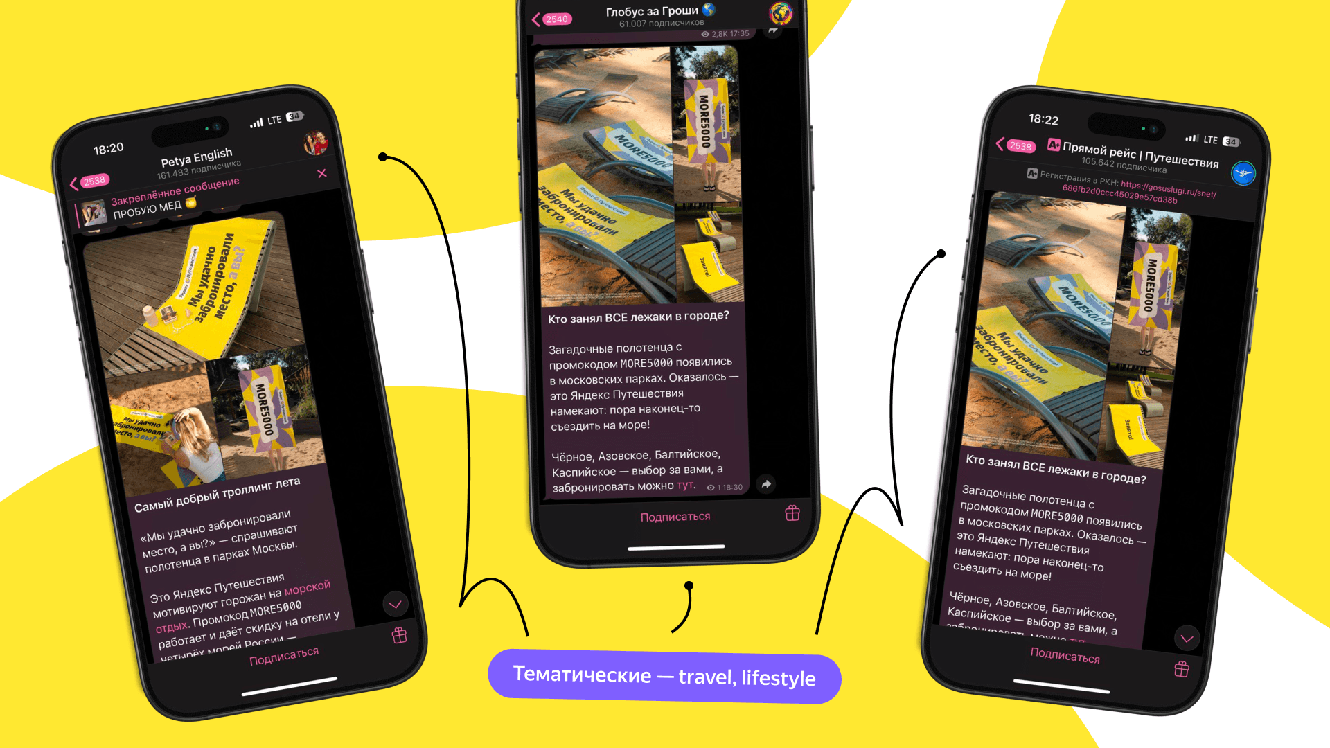 3. Тематические — здесь мы вовлекали читателей, которые уже потенциально готовы к бронированию, раз подписаны на контент о путешествиях.