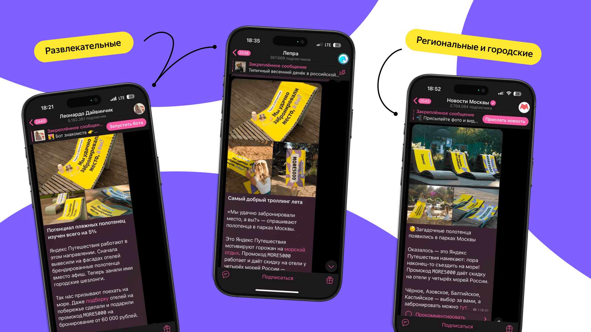 1. Развлекательные — дали широкий охват, в таких каналах подписчики хорошо реагируют на мемы и мы использовали это для текстов постов: в заголовках сделали акцент на юморе, например — «Потенциал пляжных полотенец изучен всего на 5%».