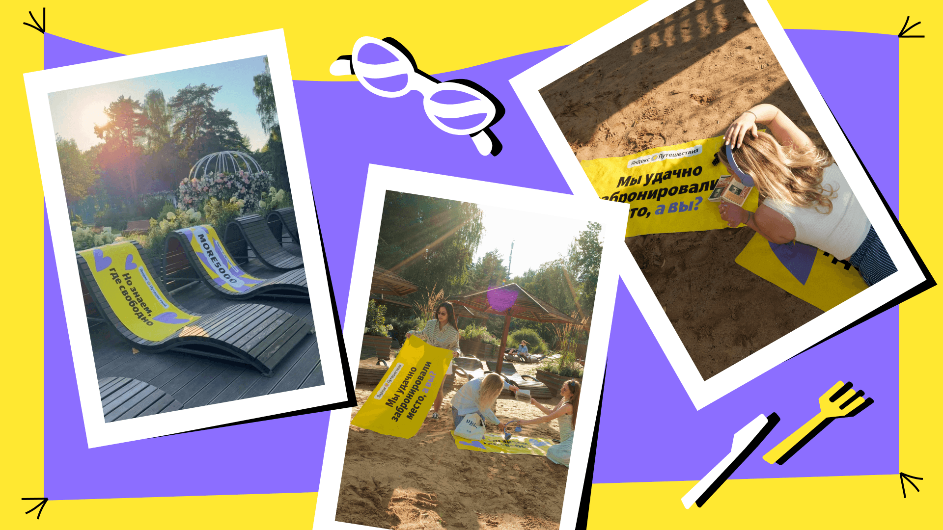 Для полотенец нашли ткань, на которой промокод будет выглядеть заметно и хорошо читаться. Дизайнеры собрали макеты по гайдам Яндекс Путешествий и отправили ткань в печать. Через два дня у нас были готовые полотенца — мягкие, яркие и зовущие к морю.