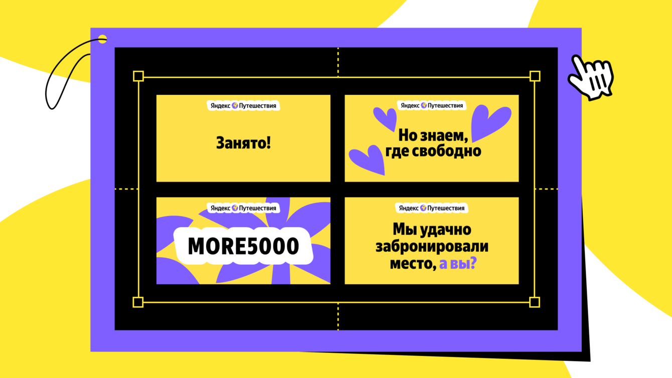 Цель была сделать так, чтобы как можно больше людей узнали о промокоде на бронирование отеля или квартиры на Яндекс Путешествиях.
