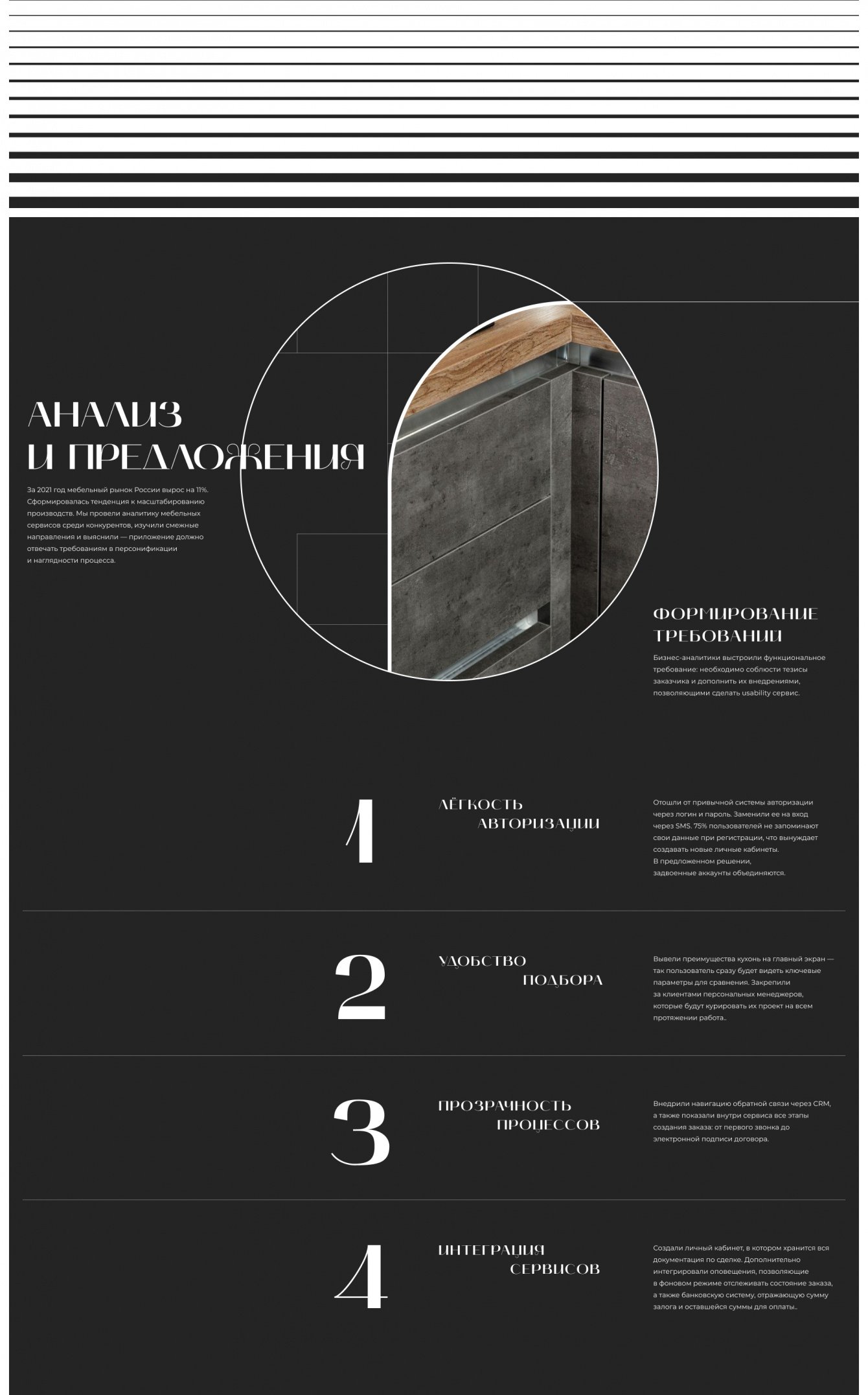 Разработать приложение с каталогом и возможностями личного кабинета клиента, где можно будет работать с документами для покупки и оплаты мебели.