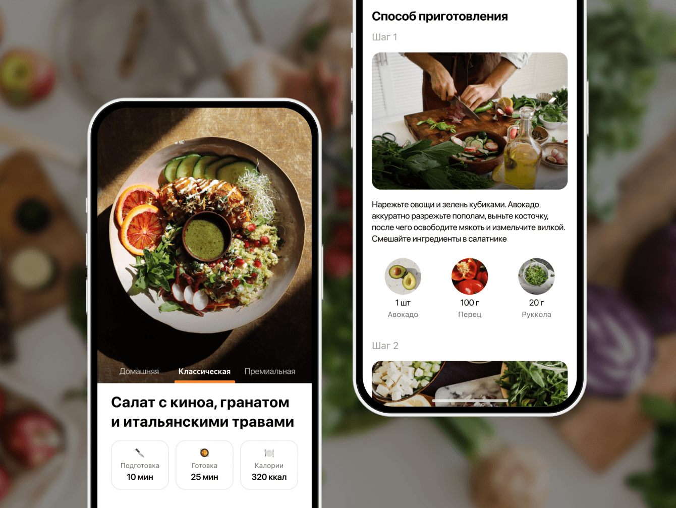 Каждое блюдо можно приготовить несколькими способами: свайп влево – перед вами любимая домашняя кухня, в центре внимания классический идеальный рецепт из ресторана, свайп вправо – это премиальная версия с необычными ингредиентами и решениями.