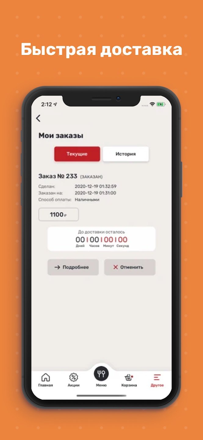 Разработать приложения для доставки еды из кафе "Кулинариум", серверную часть, а так же приложения для сборщика и доставщика.