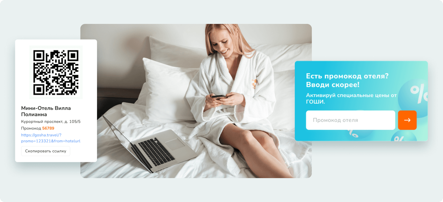 Доступ к туристам прямо через отели и агрегатор.