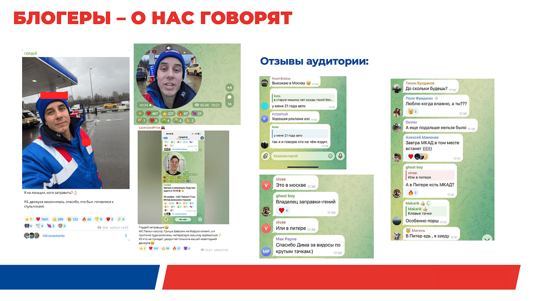 Бренд вышел на рынок всего пару лет назад. Чтобы выделиться из клаттера и завоевать внимание аудитории, в своей коммуникации мы всегда руководствовались принципом «лучше один раз увидеть, чем сто раз услышать». Использовали охватные PR-инструменты, показывали АЗС через блогеров и лидеров мнений, интегрируясь в их реальных лайфстайл. Но это всегда был разговор с аудиторией через «посредника».