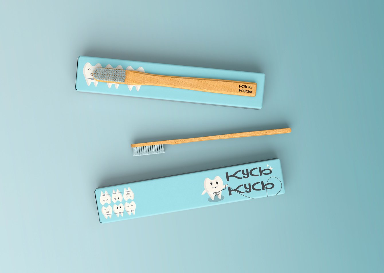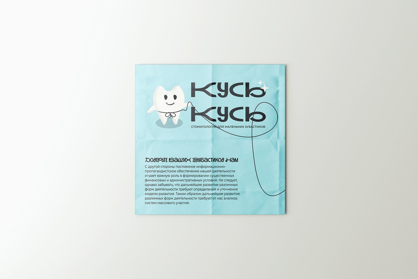 Мы создали игривый логотип со «смешно-кусючим» шрифтов— буквы будто прикусывают друг друга, поддерживая веселый характер бренда. Символом клиники стал зубик-маскот, который добавляет эмоциональности и помогает наладить контакт с детьми.