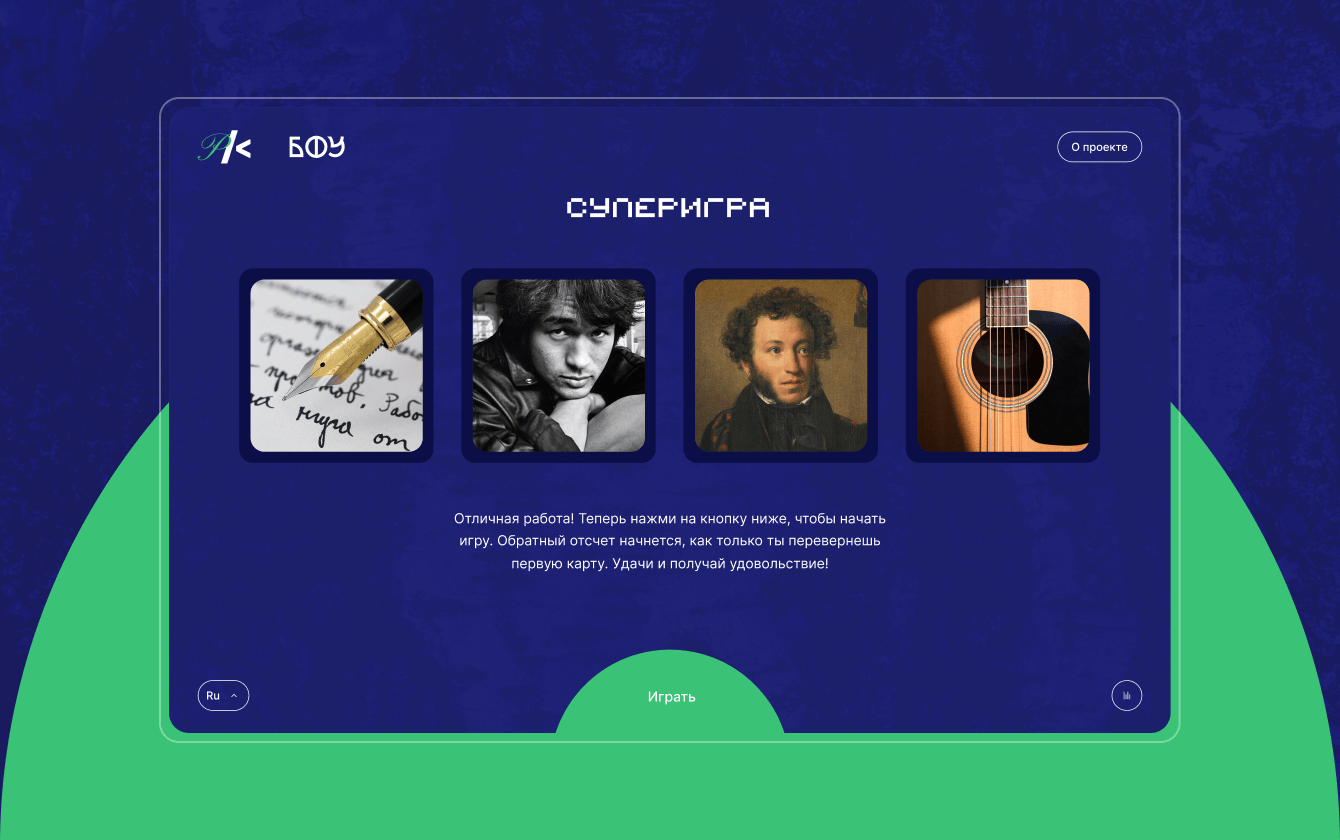 БФУ им. И. Канта обратился к нам, чтобы улучшить уже существующий квиз как со стороны дизайна, так и со стороны технической реализации.