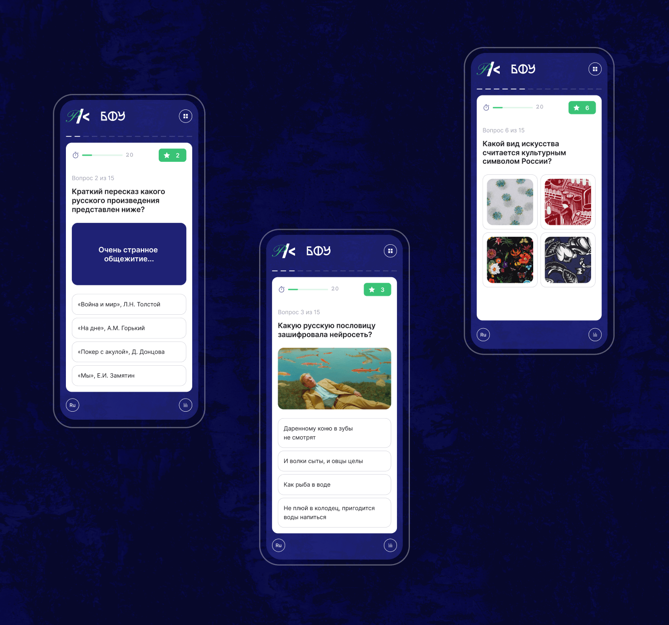 БФУ им. И. Канта обратился к нам, чтобы улучшить уже существующий квиз как со стороны дизайна, так и со стороны технической реализации.