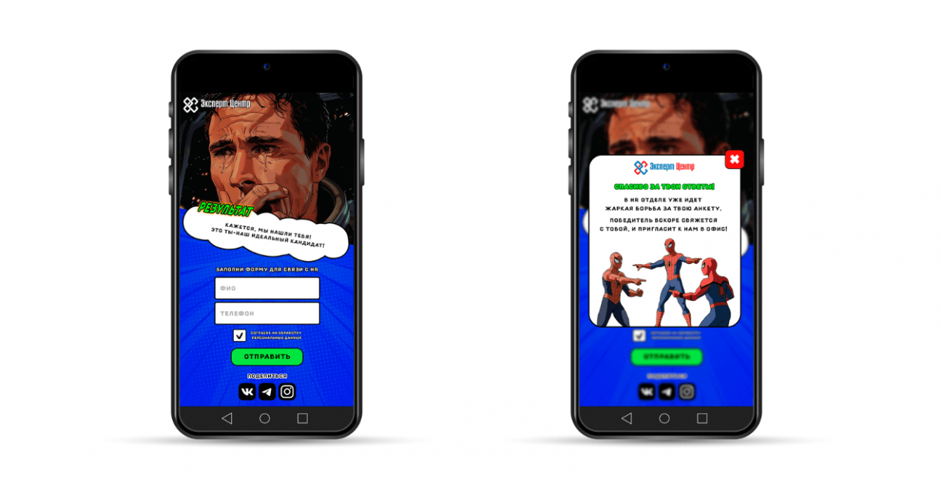 Для компании Эксперт Центр было разработано два интерактива для привлечения соискателей и формирования кадрового резерва.