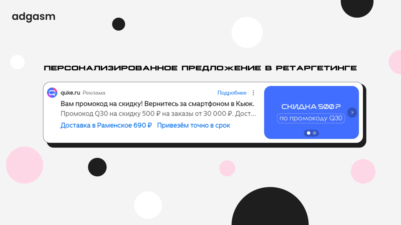 И запустили рекламу по запросам, связанным с конкурентами. Таким образом Кьюк попадал в выдачу по другим компаниям, а промокоды вызывали ассоциацию и давали выгодное предложение.