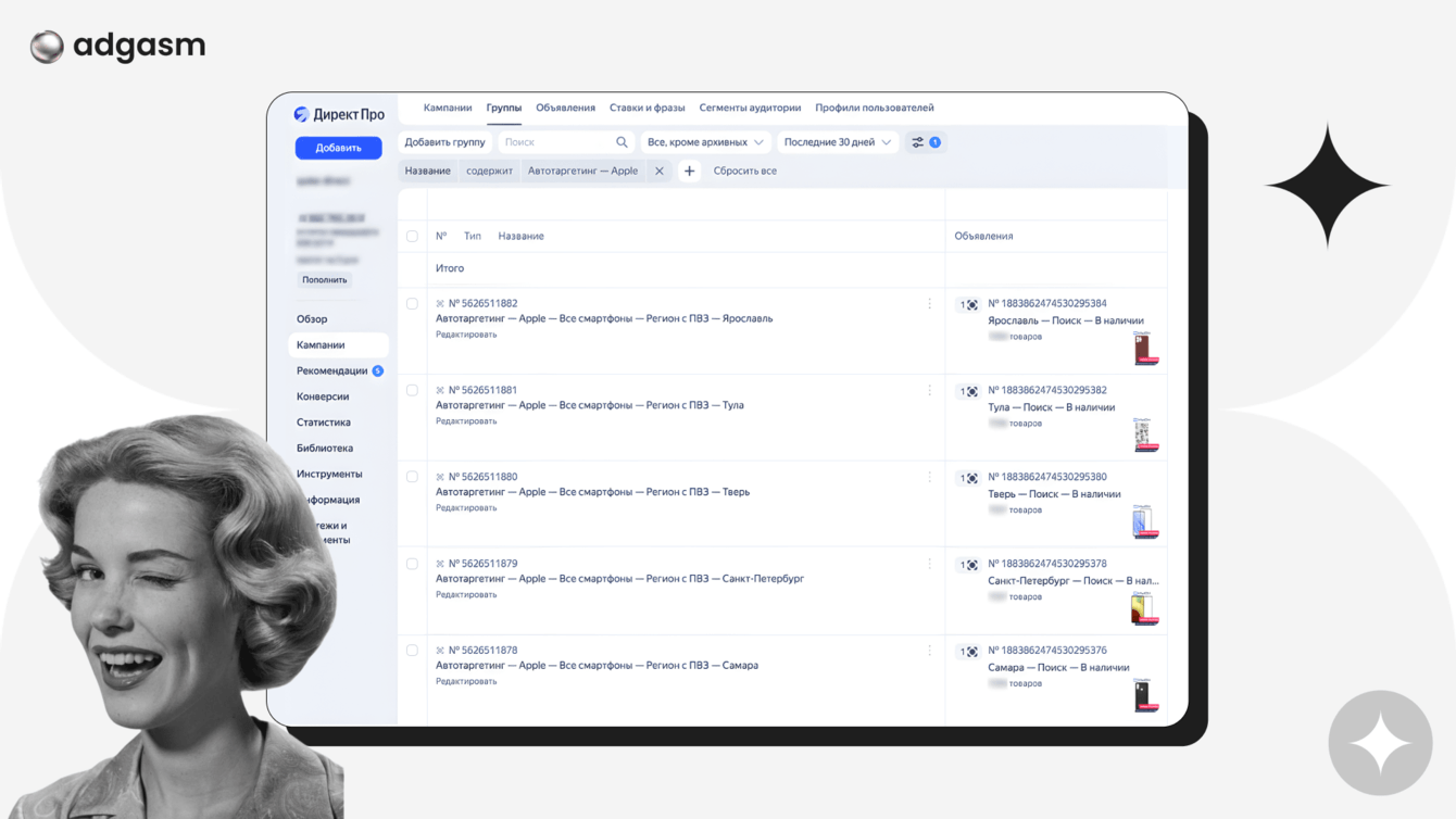 На наш взгляд, с ней проще управлять эффективностью регионов: можно повышать или понижать целевые значения CPA и ДРР для отдельных групп, а не только через геокорректировки.