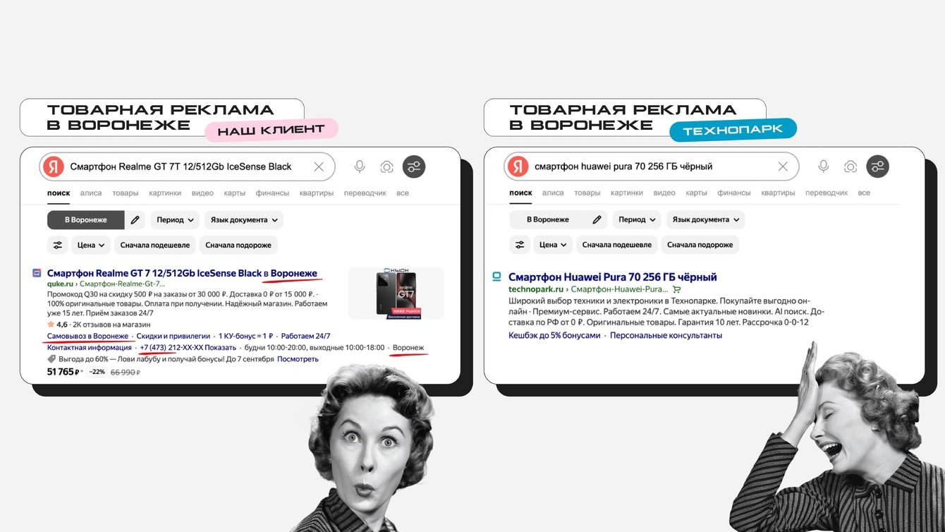 Мы уверены, что адаптация рекламы под конкретные условия даёт более качественный результат и вызывает больше доверия у пользователей, поэтому строим управляемый канал продаж и постоянно корректируем фид, оферы, адреса и контакты.
