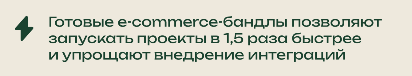 Платформа построена на наборе независимых e-commerce-бандлов: каталог, корзина, поиск, авторизация, личный кабинет и другие ключевые функции. Это позволяет развивать отдельные части системы изолированно, упрощает сопровождение и снижает стоимость изменений при росте бизнес-требований.