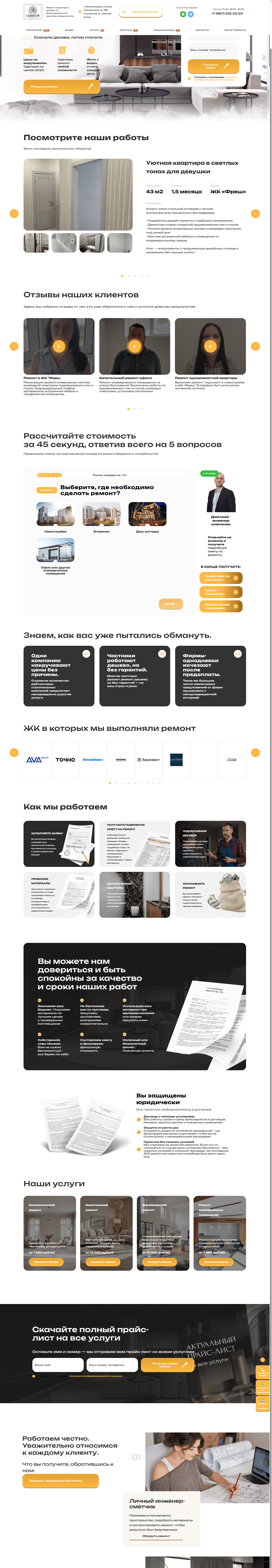 Мы начали нашу работу с изучения ниши рынка и анализа потребностей целевой аудитории. Поняли, что важно не просто создать сайт, а сделать его удобным для всех, кто заинтересован в ремонте и улучшении жилищных условий
