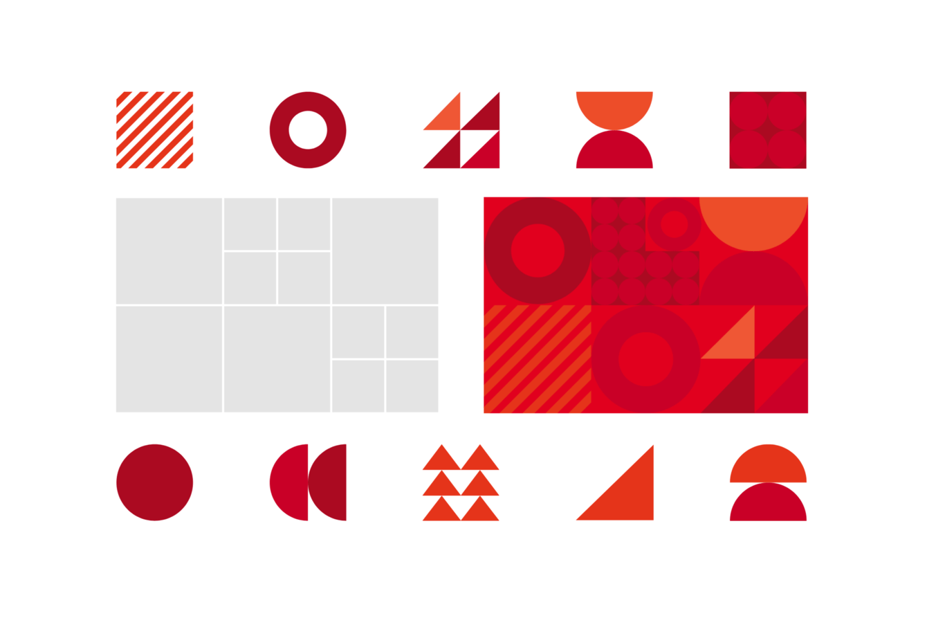 Так у нас получились паттерны, которые строятся по принципу разбития фоновых областей на квадраты и заполнением их простыми геометрическими элементами. Эти паттерны и легли в основу фирменного стиля.