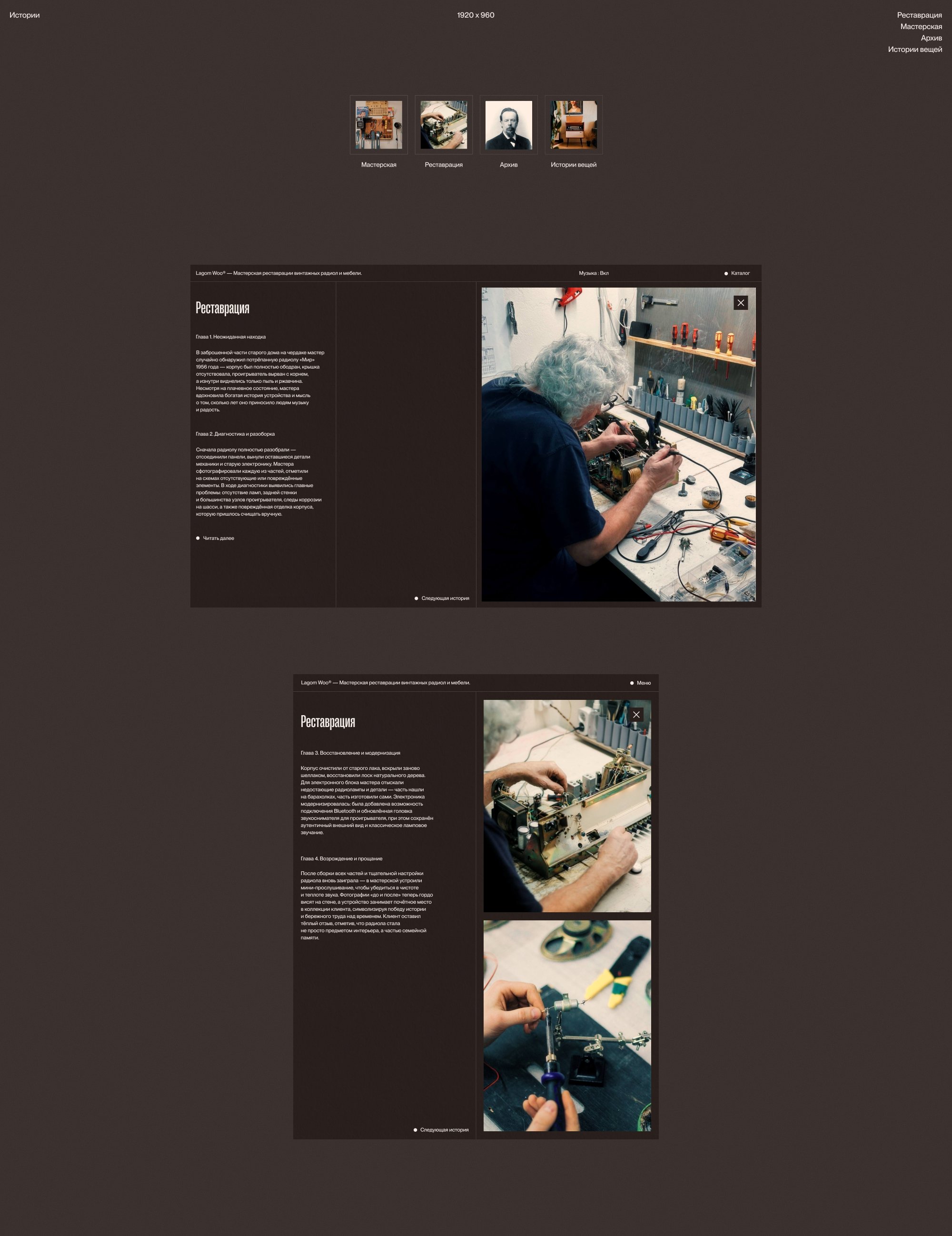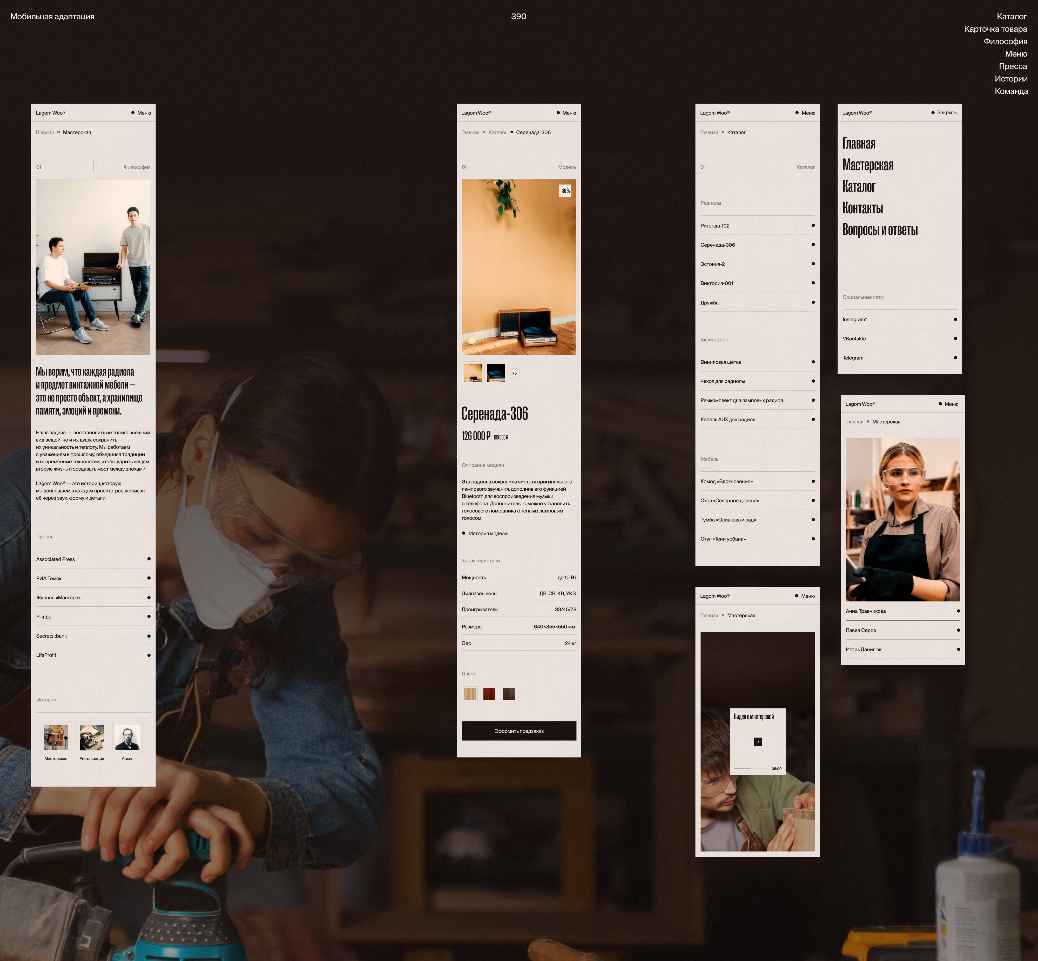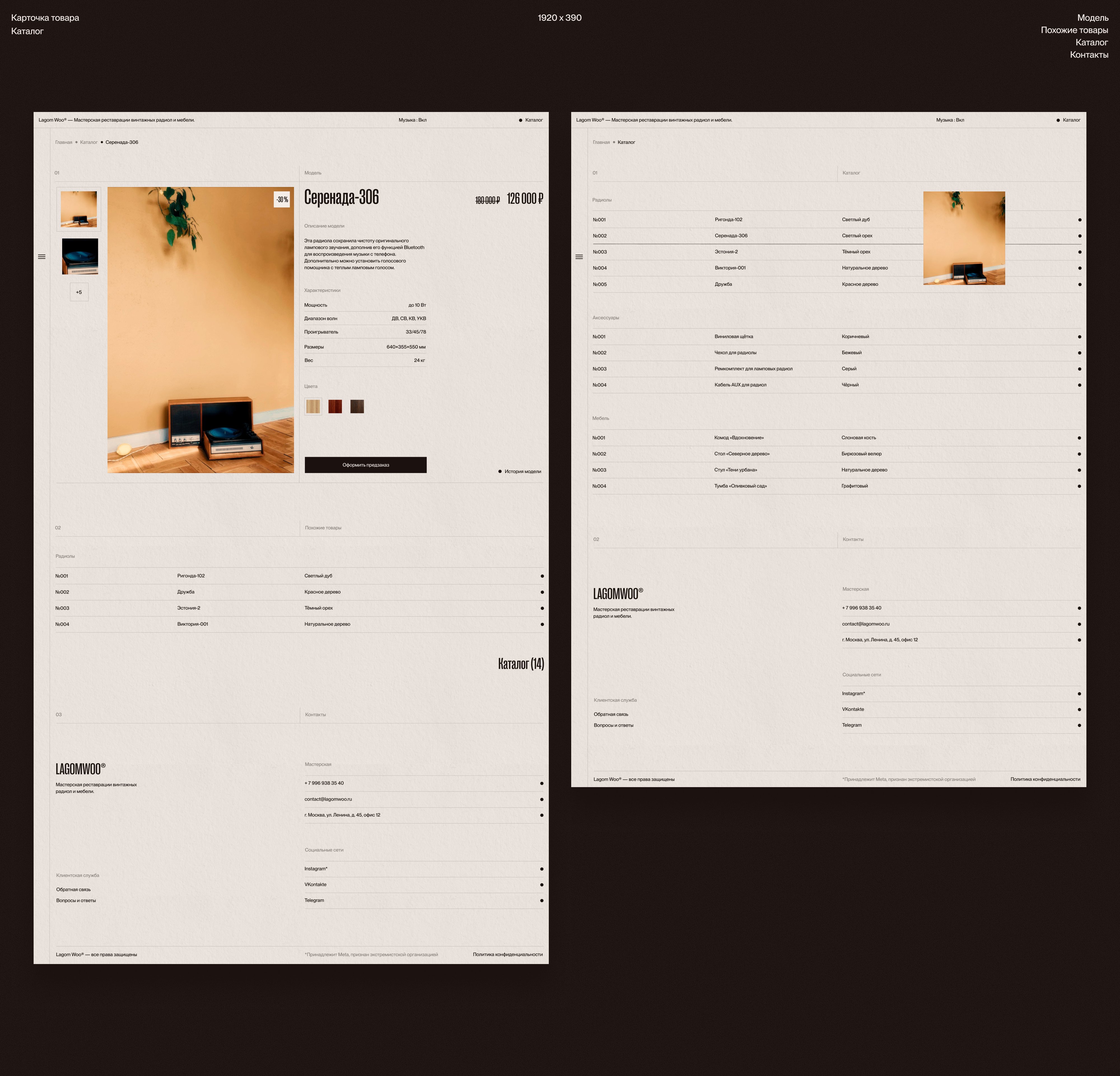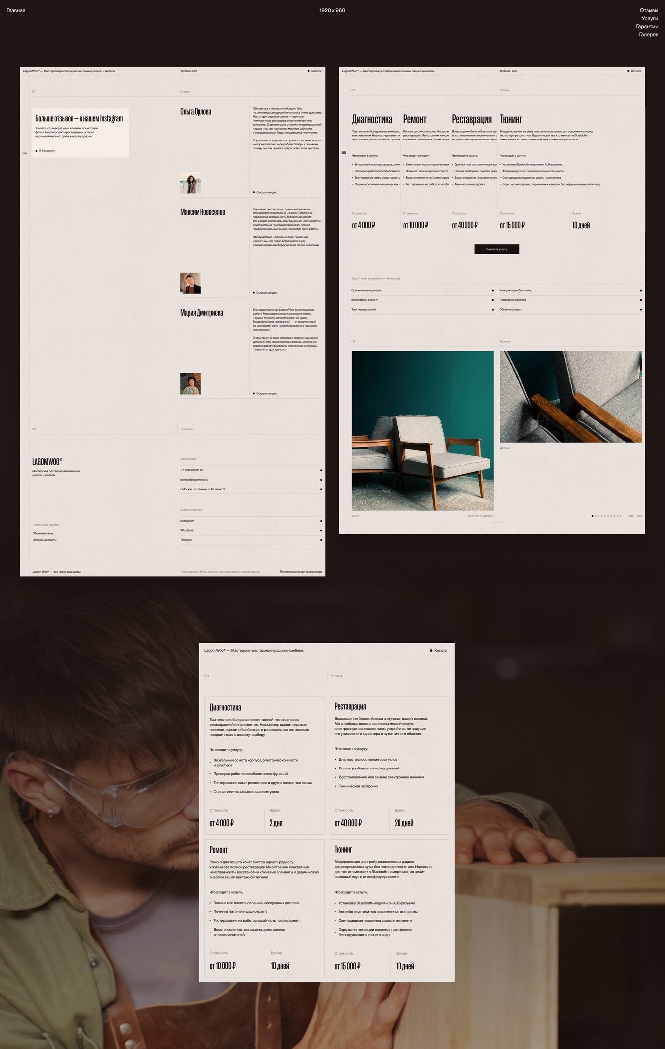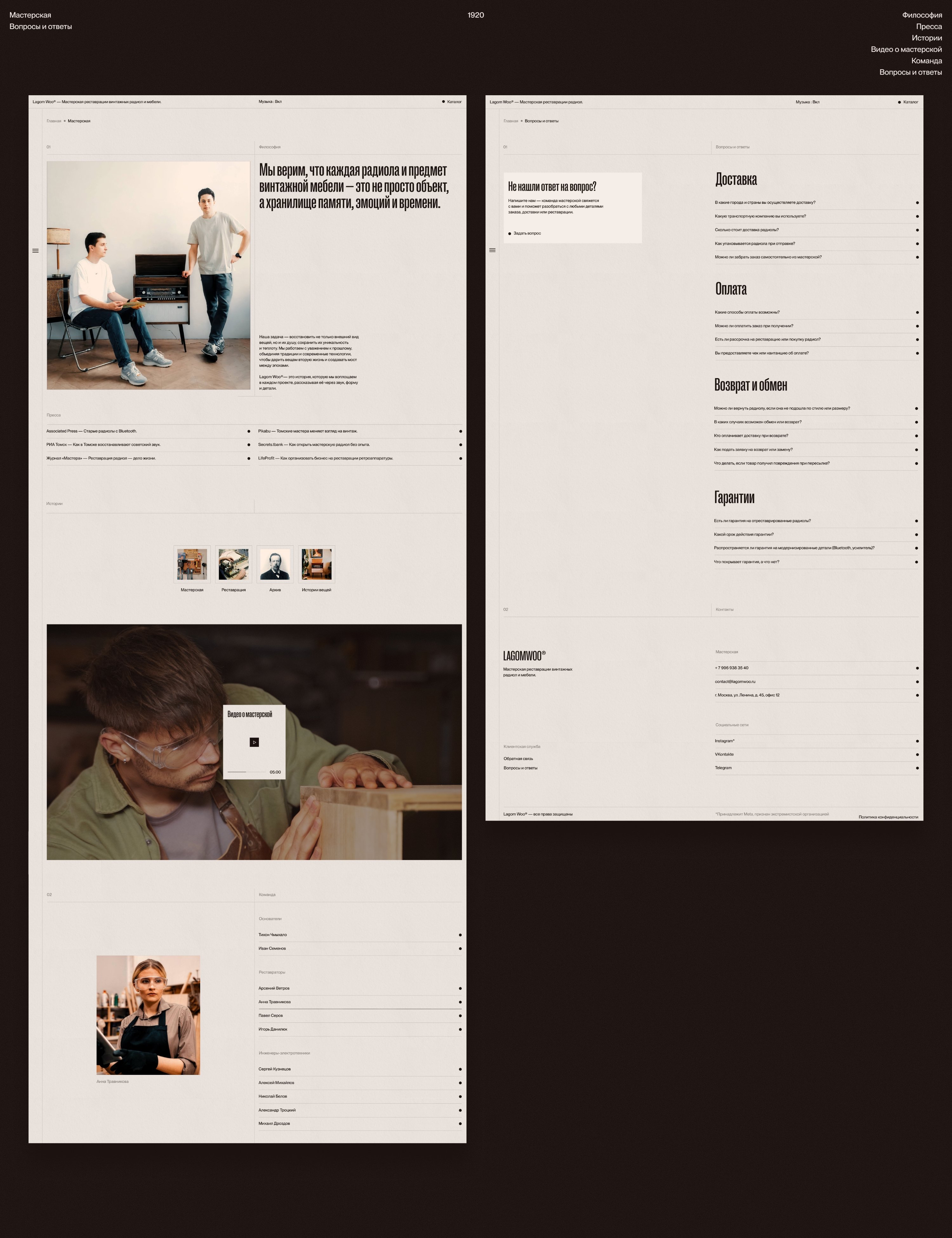 Сделали редизайн сайта для компании Lagom Woo — мастерской, специализирующейся на реставрации винтажных радиол с интеграцией современных технологий, а также реставрации мебели.