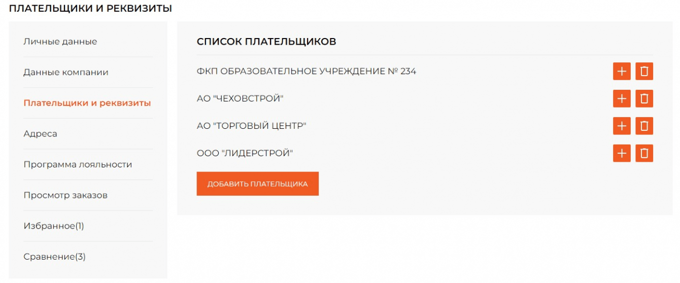 Поскольку закон не устанавливает лимит расчётных счетов для одного предпринимателя — при необходимости можно открывать любое количество счетов. Мы организуем на сайте отдельный функционал плательщиков.В каждой карточке плательщика свои данные и свои реквизиты. Добавить нового можно как через личный кабинет, так и на оформлении заказа. А потом просто выбирать из выпадающего списка нужного.