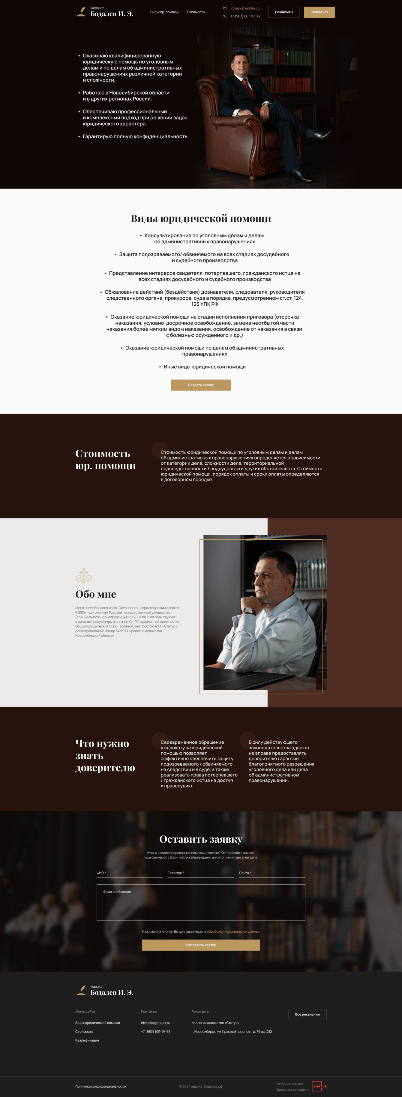 Разработать Landing page для адвоката по уголовным делам и делам об административных правонарушениях.