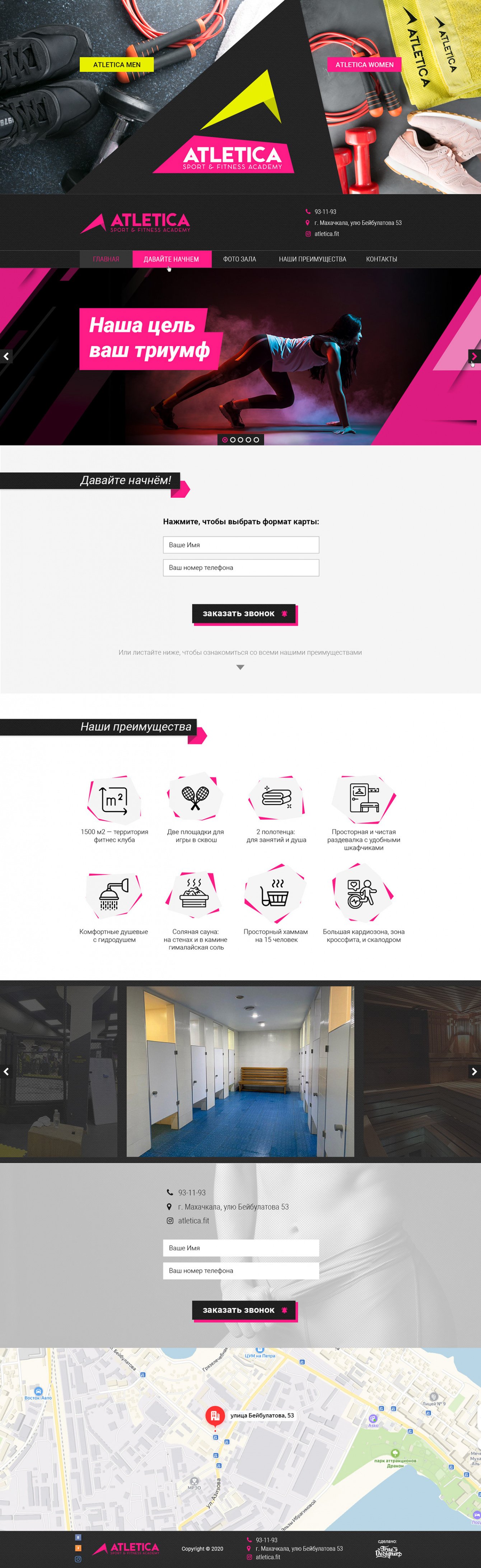 Мы создали яркий и привлекательный лендинг для фитнес клуба ATLETICA, который представляет компанию и ее услуги с помощью информации о компании в цифрах и стильного дизайна.