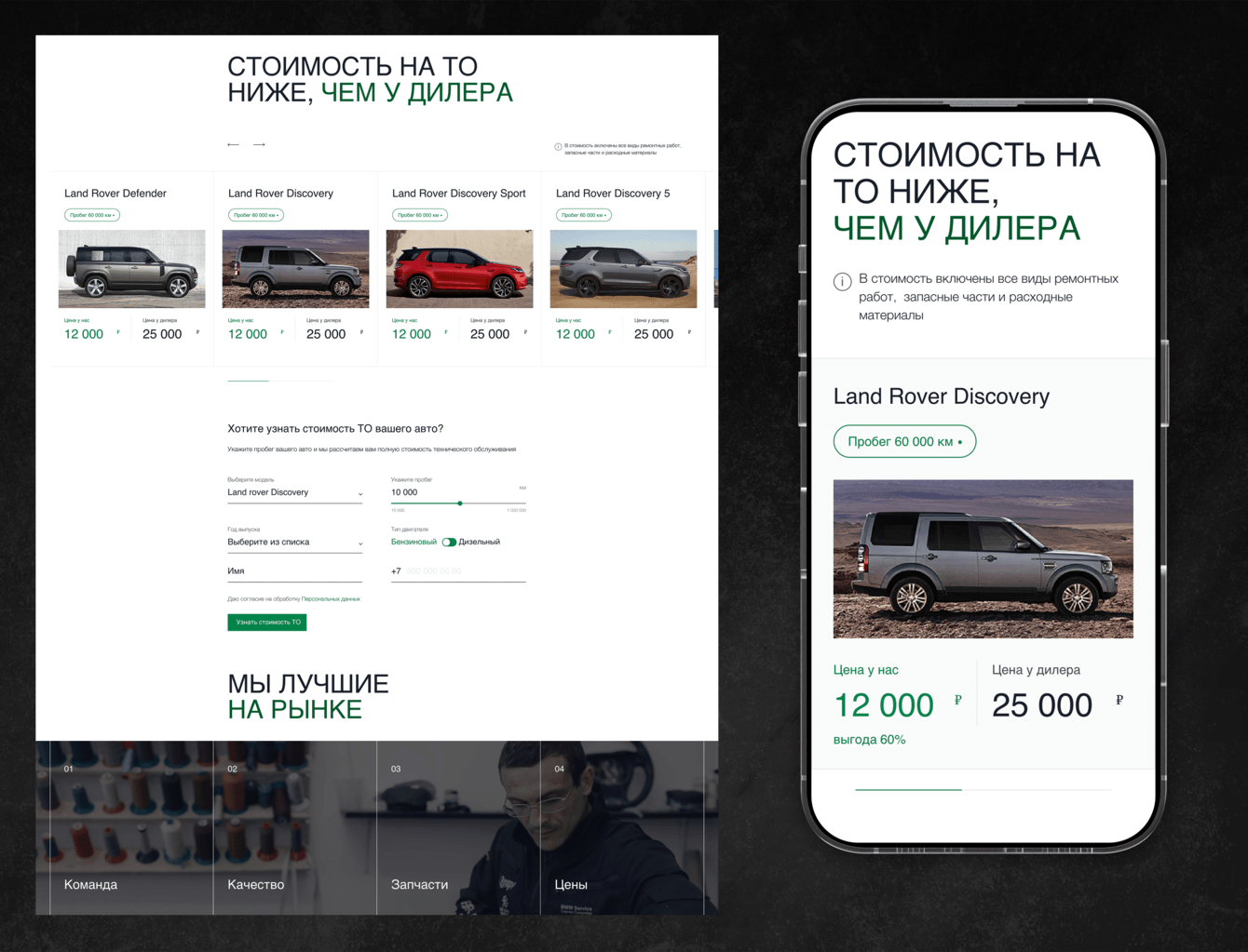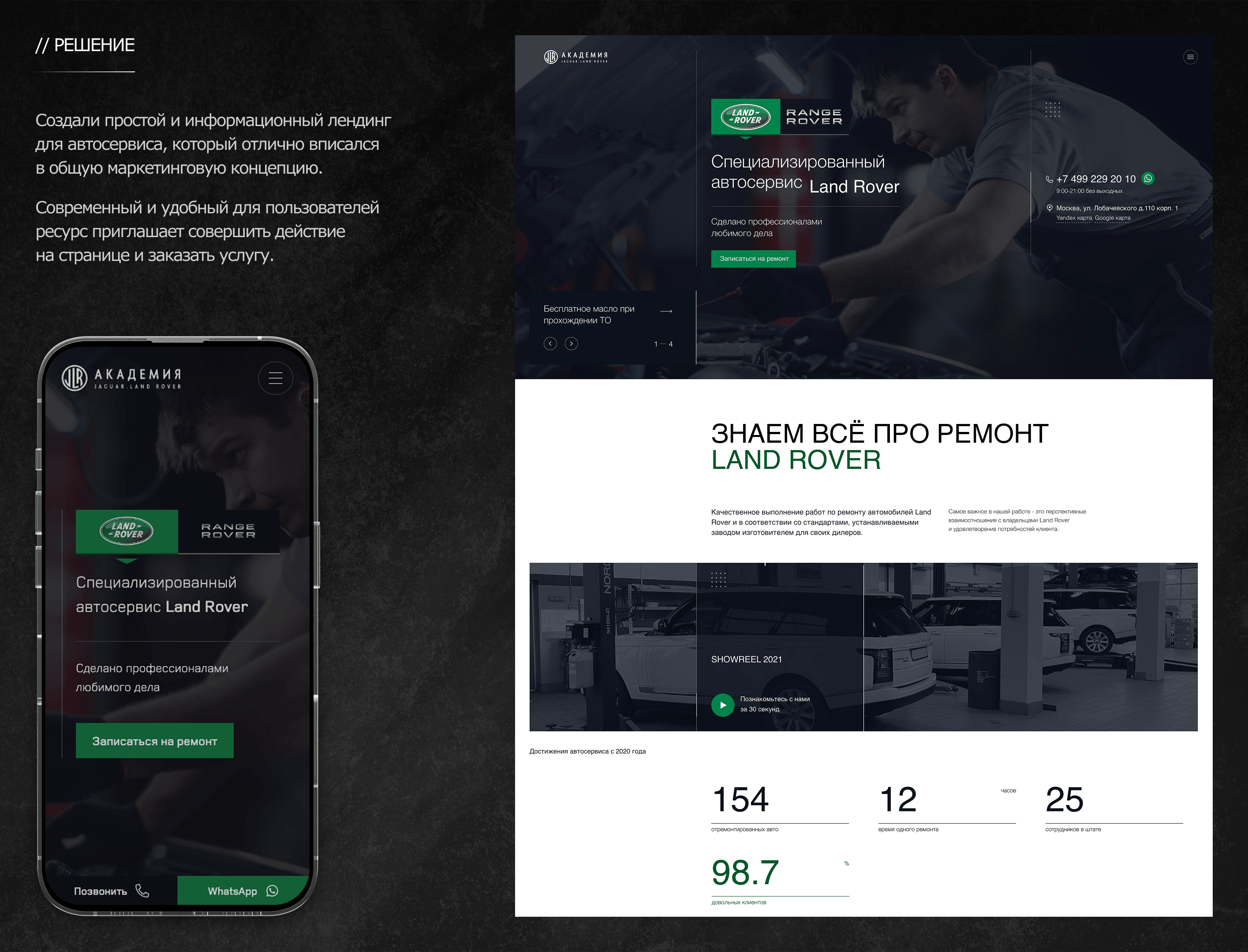 Создан минималистичный и современный дизайн, отражающий премиальность бренда Land Rover и профессионализм сервиса.