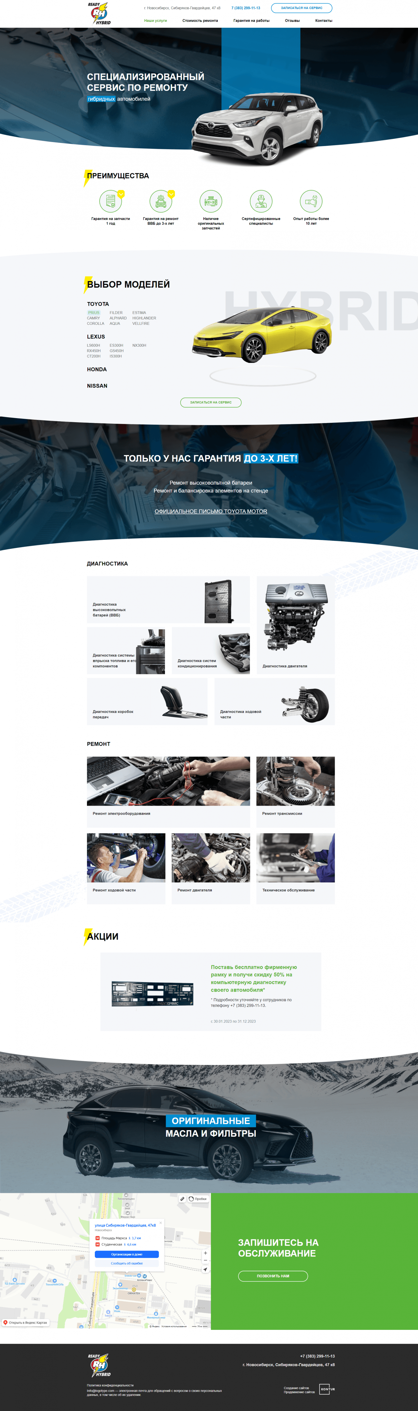 Команда наших специалистов успешно создала Landing Page с удобной навигацией и быстрой записью в сервис. Пользователям доступен полный список услуг и гибридных автомобилей без необходимости дополнительного поиска. Заказчик получил безопасный и надежный сайт с полным функционалом.