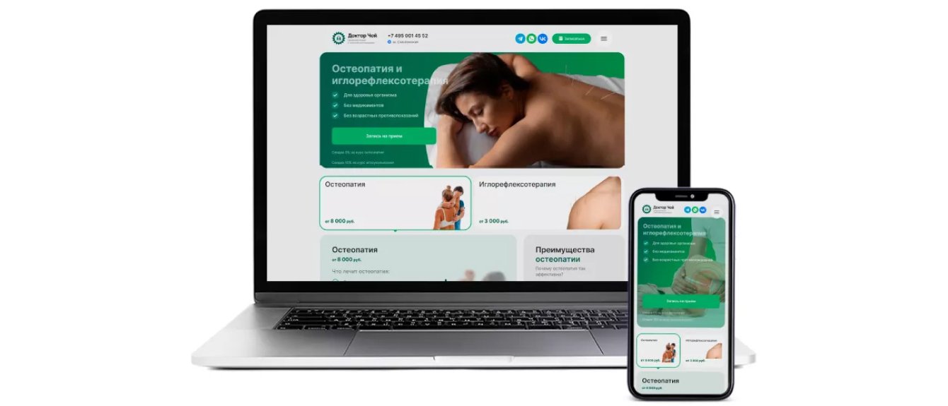 На многостраничном сайте клиники представлен широкий спектр услуг, но клиент выделил наиболее популярные: остеопатия и иглорефлексотерапия.