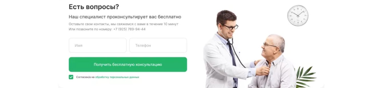 После информации о центре идет раздел с лид-формой, в которой пользователю достаточно оставить свое имя и номер телефона.